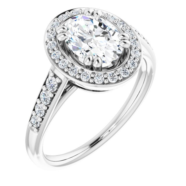 Violet Women's 14K Gold Oval and Round Cut Natural Diamond Engagement Ring | Prong Pinpoint Set | 1ct