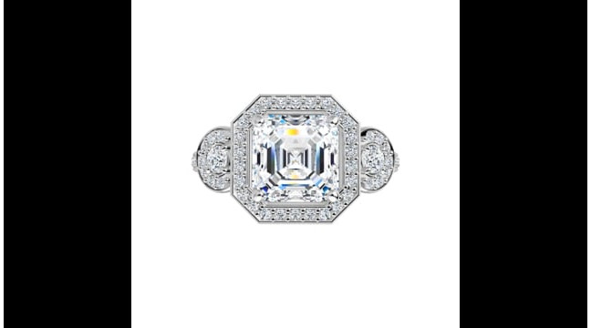 Winter Women's 14K Gold Asscher and Round Cut Lab-Grown Diamond Three-Stone Engagement Ring | Prong Pinpoint Set | 2ct