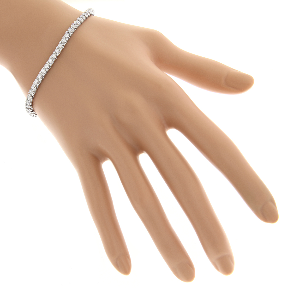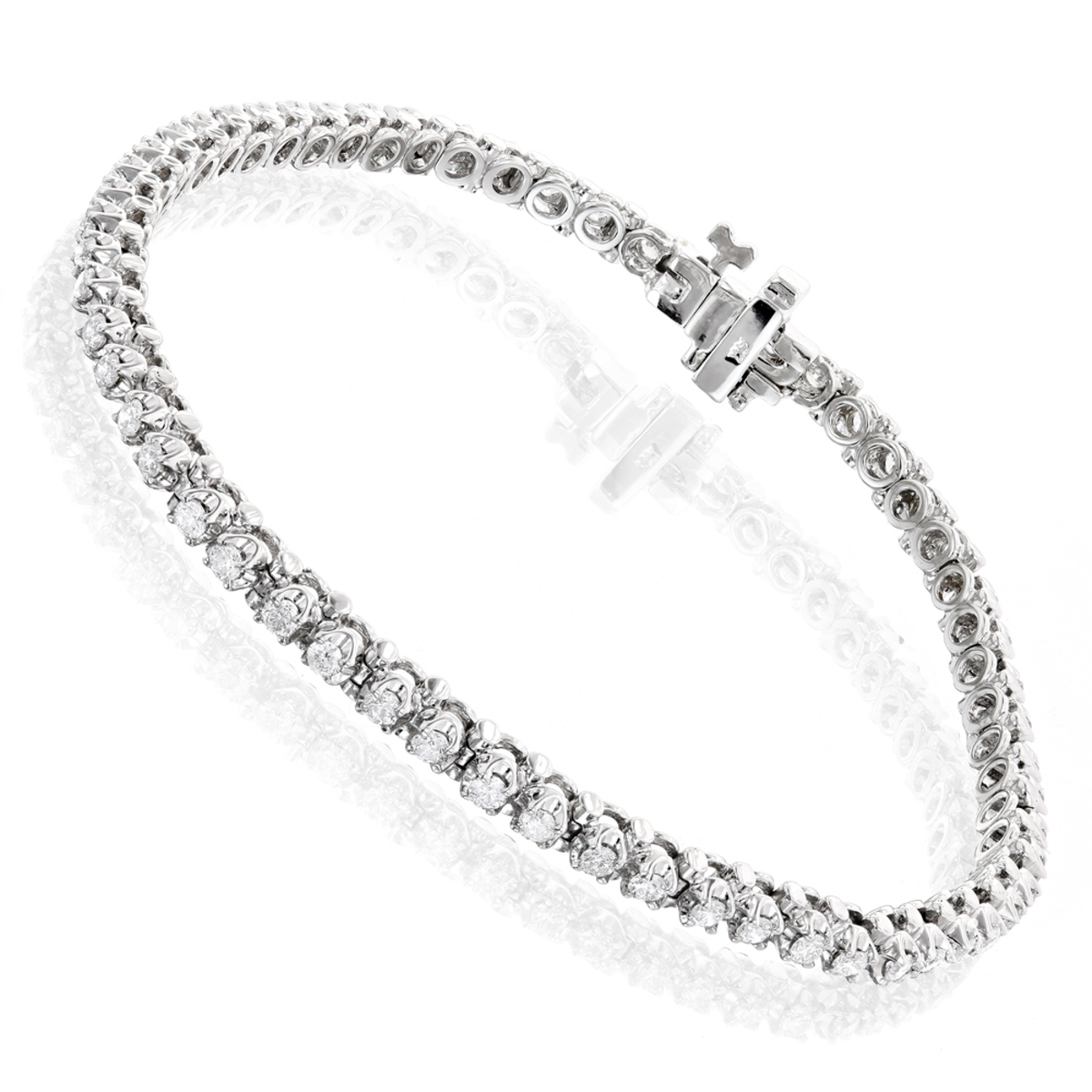 This Women's Diamond Tennis bracelet is made from 10k Gold, weighing 8 grams and is 3 mm wide and length inches. This Women's Diamond bracelet features 1.5 carats of White Diamonds, showcasing a chain and is available in 10k white gold, yellow gold and rose gold as well as 14k gold, 18k gold and platinum as a custom order.