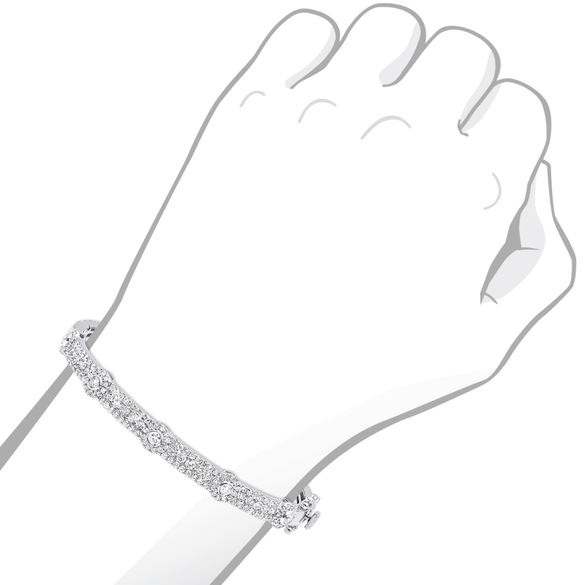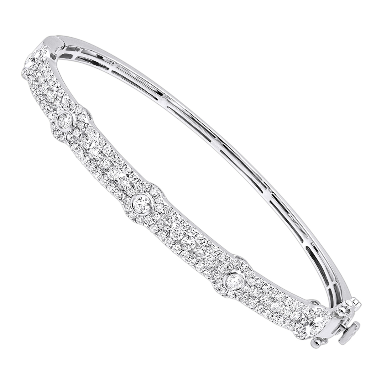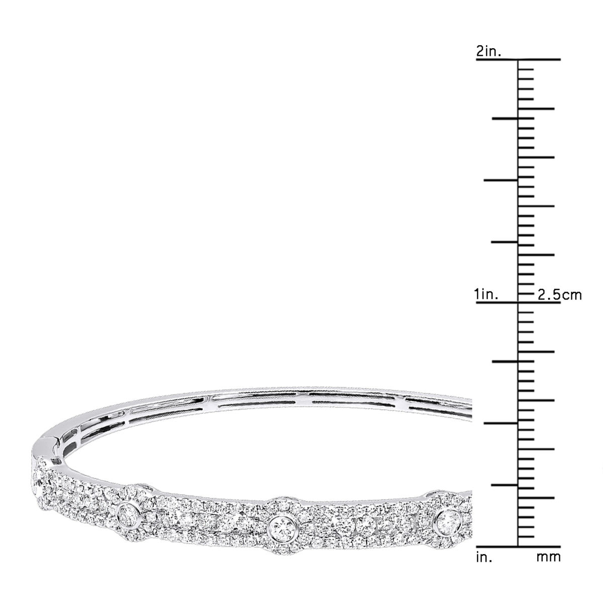 This Women's Diamond Bangle bracelet is made from 14k Gold, weighing 12 grams and is 6 mm wide and length inches. This Women's Diamond bracelet features 2 carats of White Diamonds, showcasing a chain and is available in 14k white gold, yellow gold and rose gold as well as 18k gold and platinum as a custom order.