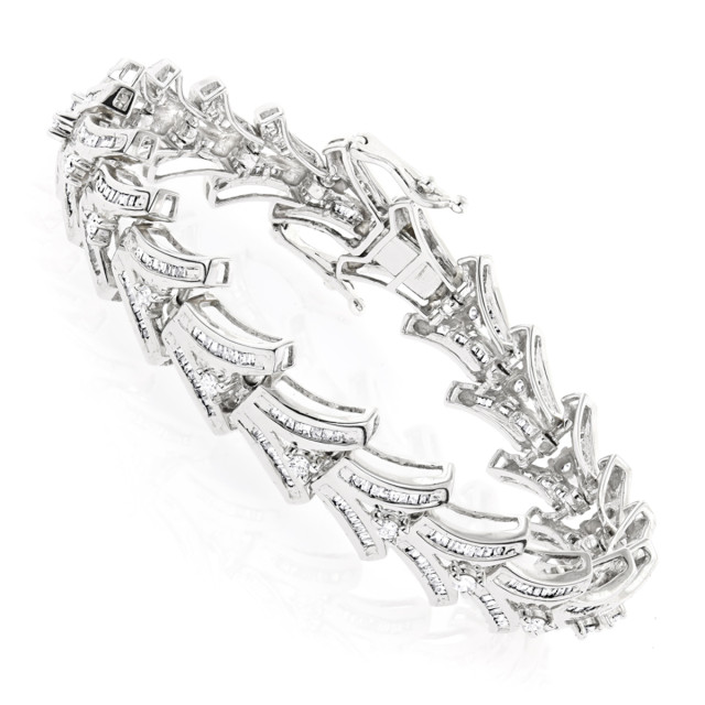This Women's Diamond bracelet is made from 14k Gold, weighing 24.5 grams and is 12 mm wide and length inches. This Women's Diamond bracelet features 4.95 carats of White Diamonds, showcasing a chain and is available in 14k white gold, yellow gold and rose gold as well as 18k gold and platinum as a custom order.