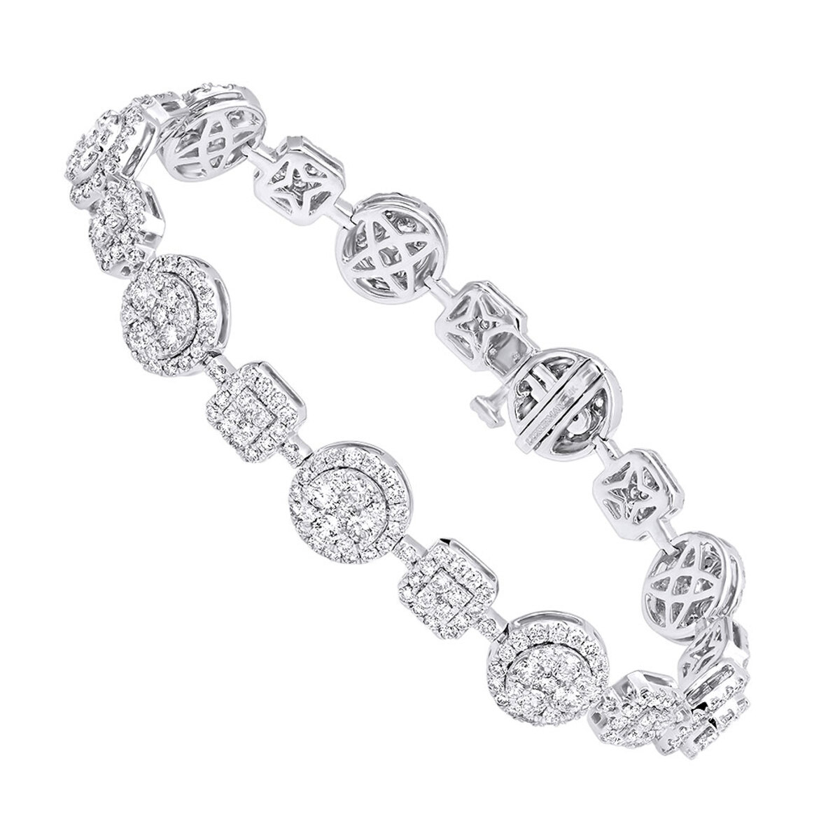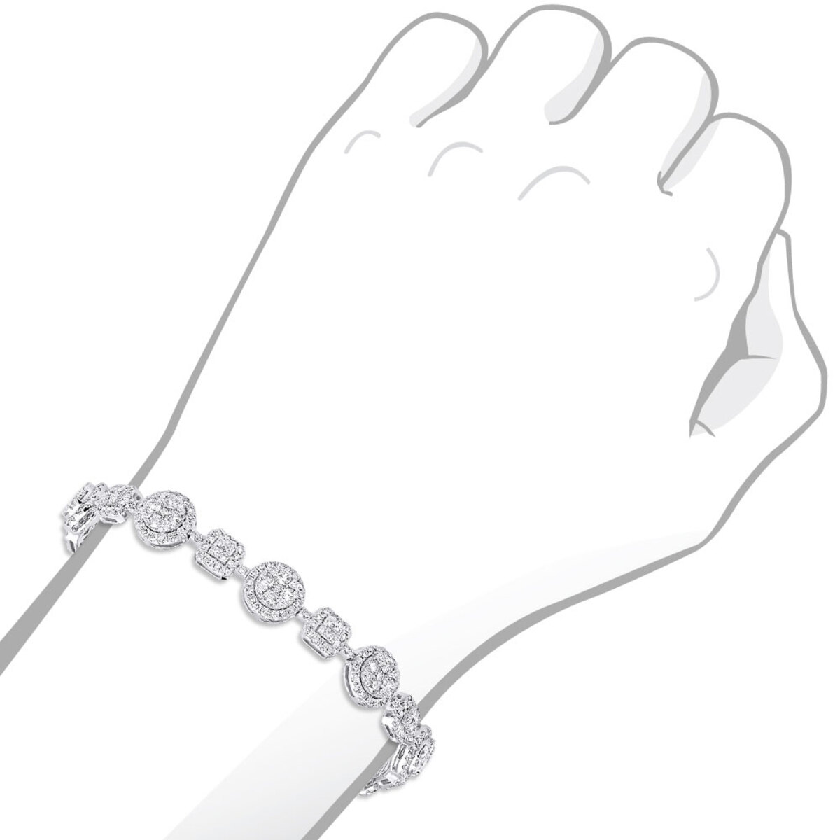 This Women's Diamond bracelet is made from 14k Gold, weighing 16.5 grams and is 9 mm wide and length inches. This Women's Diamond bracelet features 6 carats of White Diamonds, showcasing a chain and is available in 14k white gold, yellow gold and rose gold as well as 18k gold and platinum as a custom order.