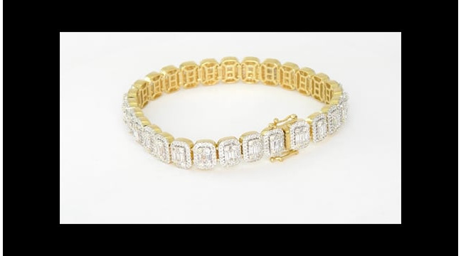 This Women's Diamond bracelet is made from 14k Gold, weighing 29 grams and is 9 mm wide and length inches. This Women's Diamond bracelet features 8 carats of White Diamonds, showcasing a chain and is available in 14k white gold, yellow gold and rose gold as well as 18k gold and platinum as a custom order.
