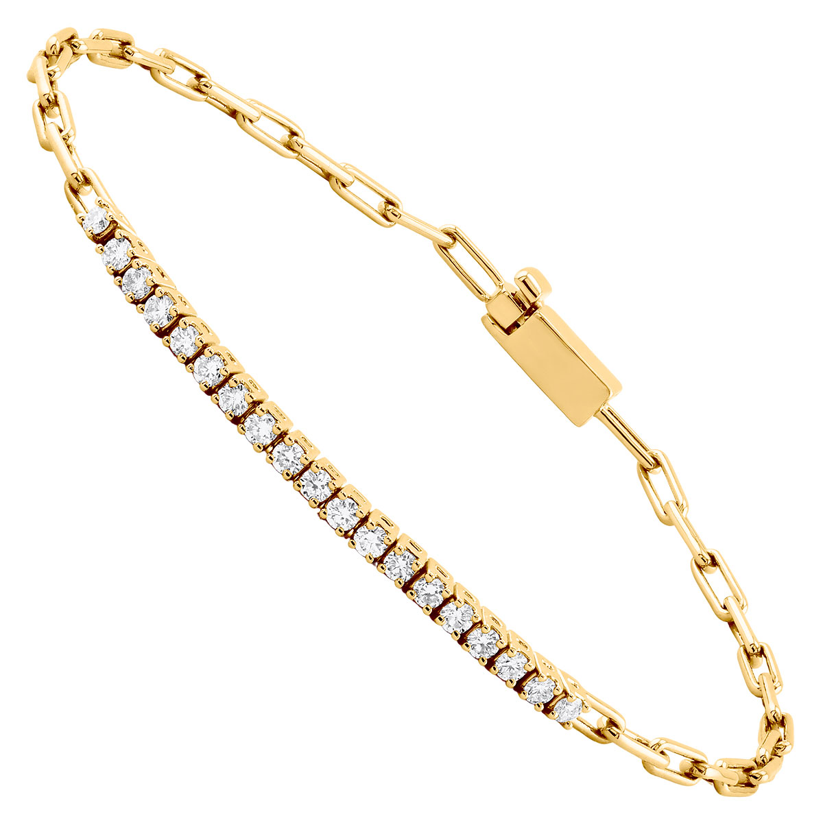 This Women's Diamond Tennis bracelet is made from 14k Gold and length inches. This Women's Diamond bracelet features 0.45 carats of White Diamonds, showcasing a chain and is available in 14k white gold, yellow gold and rose gold as well as 18k gold and platinum as a custom order.