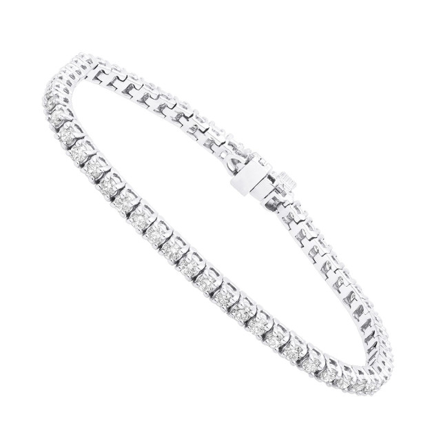 This Women's Diamond Tennis bracelet is made from 14k Gold, weighing 6 grams and is 4 mm wide and length inches. This Women's Diamond bracelet features 4 carats of White Diamonds, showcasing a chain and is available in 14k white gold, yellow gold and rose gold as well as 18k gold and platinum as a custom order.