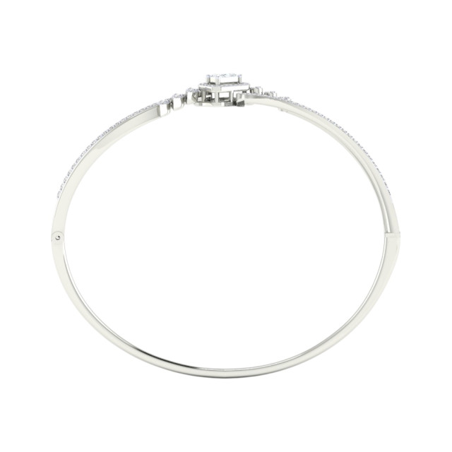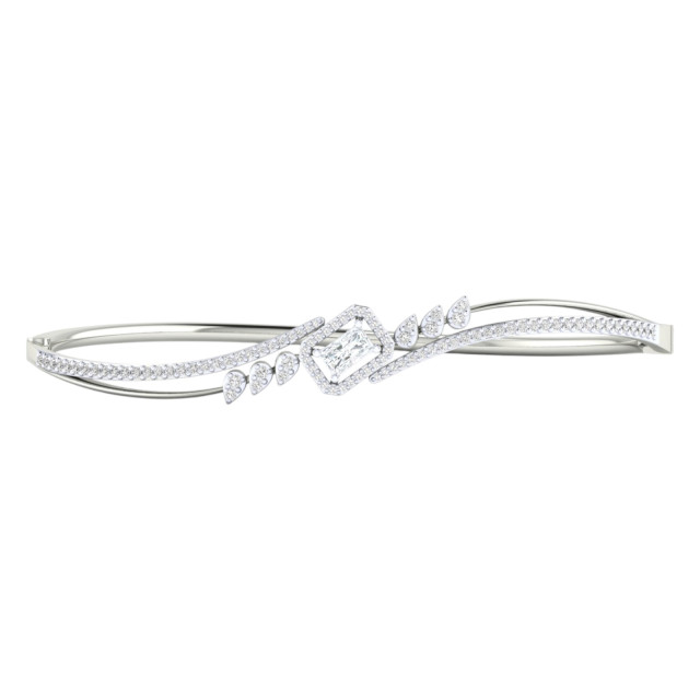 Women's 14K Gold Natural and Lab-Grown Diamond Bangle Bracelet | Prong Halo Set | 0.88ct
