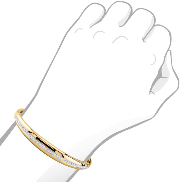 This Women's Diamond Bangle bracelet is made from 14k Gold, weighing 12 grams and is 8 mm wide and length inches. This Women's Diamond bracelet features 0.75 carats of White Diamonds, showcasing a chain and is available in 14k white gold, yellow gold and rose gold as well as 18k gold and platinum as a custom order.