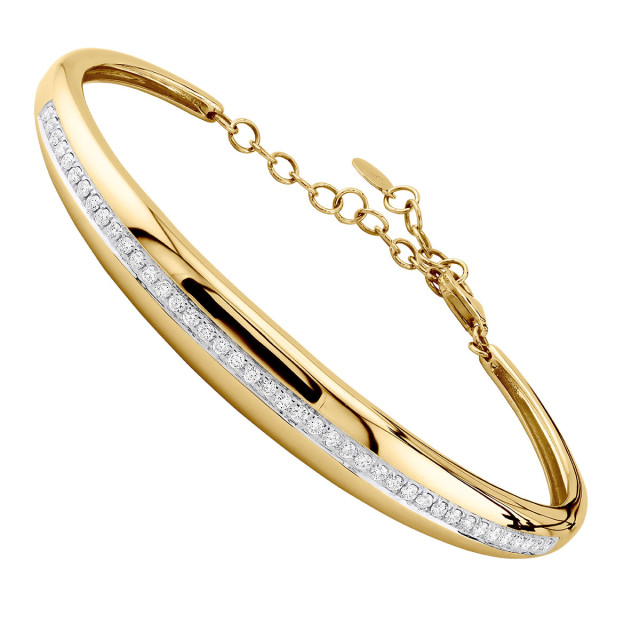 Women's 14K Gold Natural and Lab-Grown Diamond Bangle Stackable Bracelet | Prong Set | Lobster Claw Clasp | 0.75ct