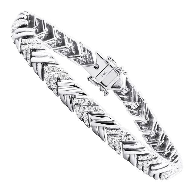 This Women's Diamond Designer bracelet is made from 14k Gold, weighing 16.14 grams and is 6.2 mm wide and length inches. This Women's Diamond bracelet features 1.7 carats of White Diamonds, showcasing a chain and is available in 14k white gold, yellow gold and rose gold as well as 18k gold and platinum as a custom order.