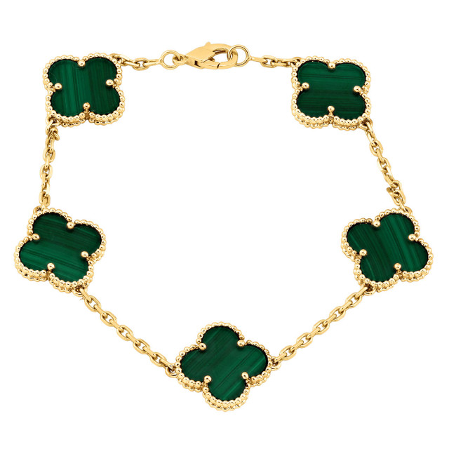 Women's 14K Gold Natural and Lab-Grown Malachite Cable Chain Bracelet | Prong Set | Lobster Claw Clasp | 17.1ct
