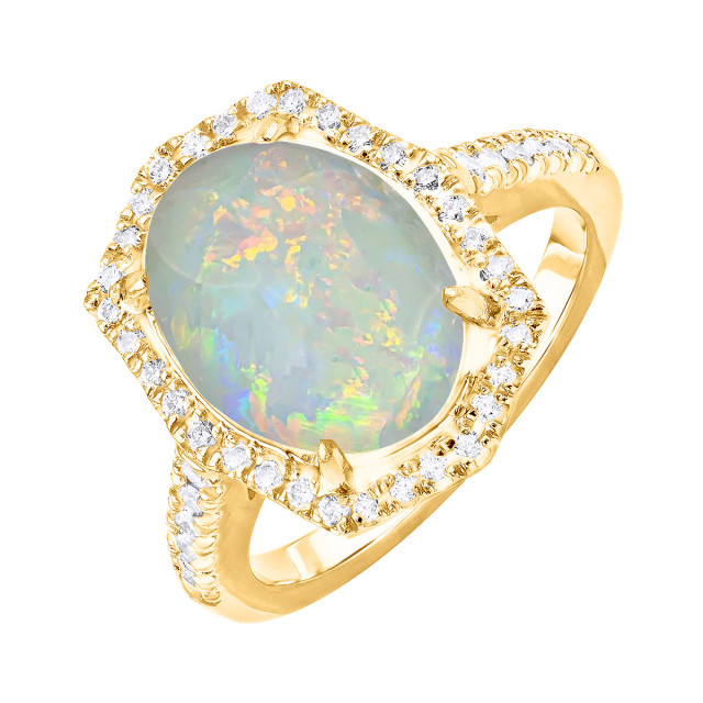 Women's 14K Gold Opal Round Diamond Cocktail Right Hand Statement Ring 4.4ct
