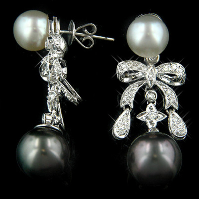 Women's 14K Gold Pearl Diamond Earrings | Bezel Pave Prong Set | 0.72ct