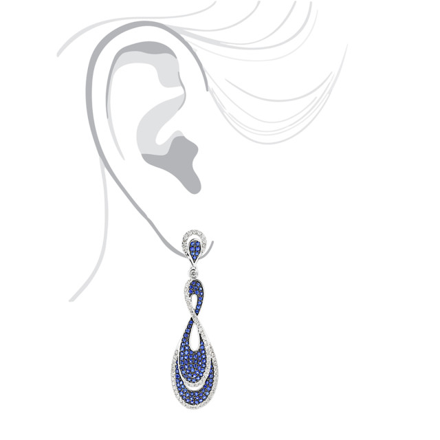 Women's 14K Gold Sapphire Diamond Drop Chandelier Earrings | Bezel Pave Set | Push Back | 3.97ct
