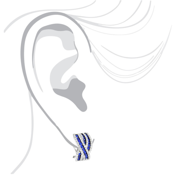 Women's 14K Gold Sapphire Diamond Earrings | Pave Channel Set | Omega Back | 3ct