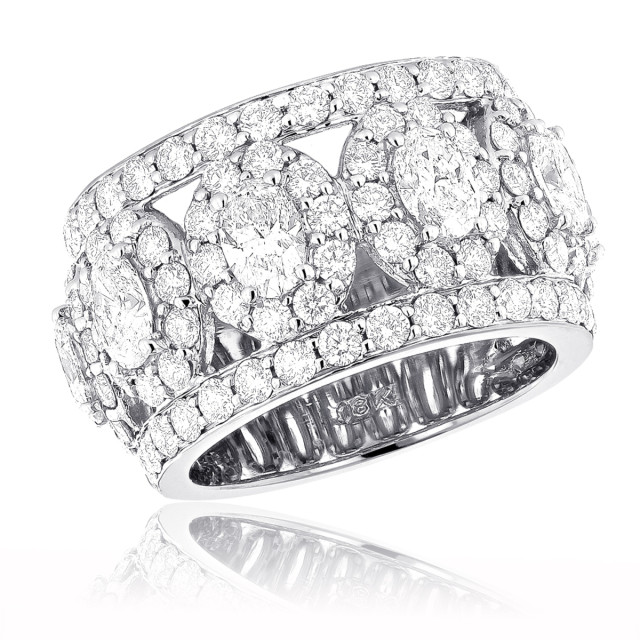 Women's 18K Gold Diamond Anniversary Wedding Ring | Pave Prong Set | 6.55ct