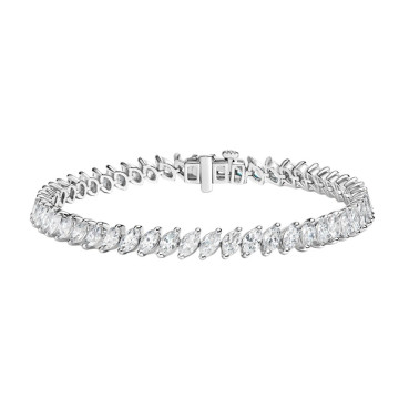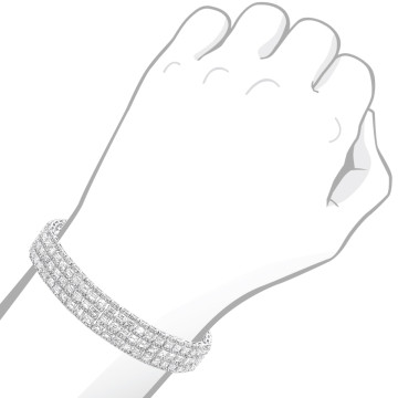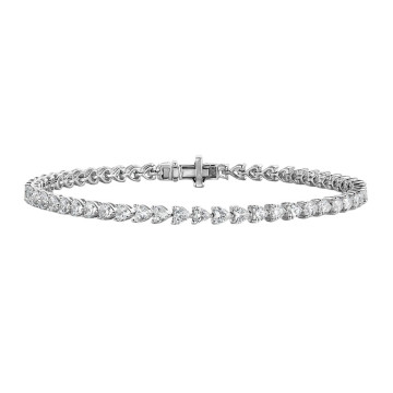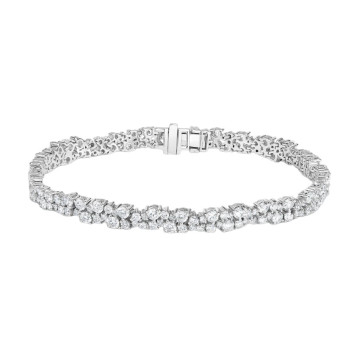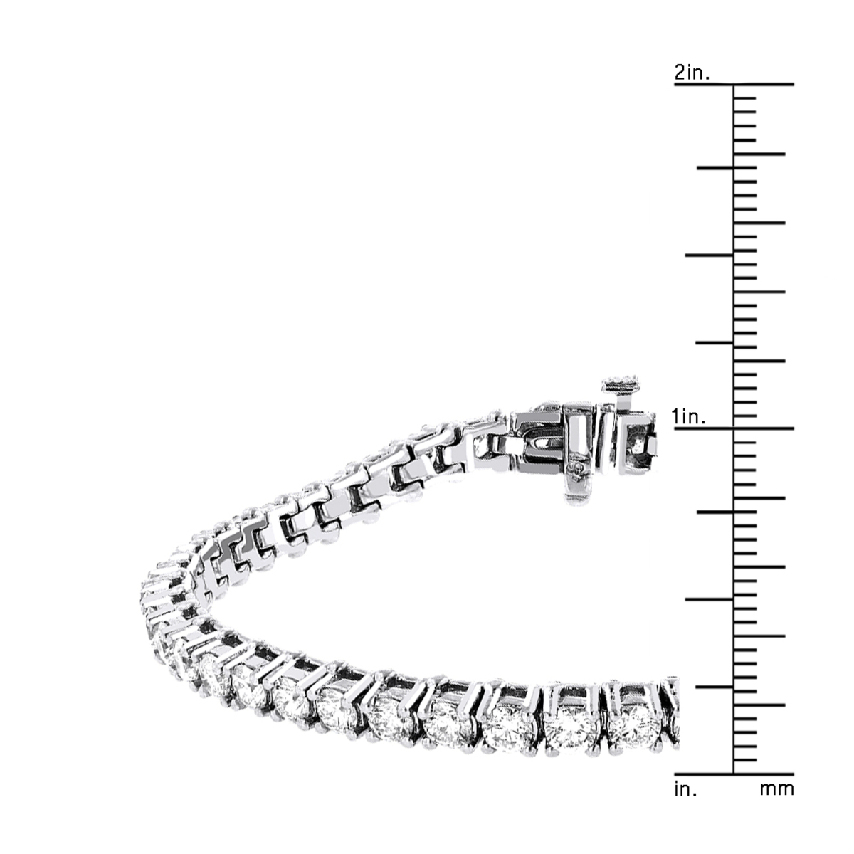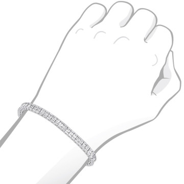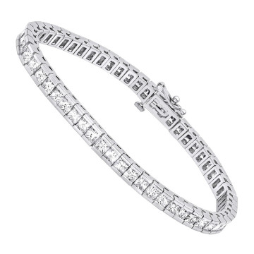 This Women's Diamond Tennis bracelet is made from 18k Gold, weighing 13.5 grams and is 4 mm wide and length inches. This Women's Diamond bracelet features 6.69 carats of White Diamonds, showcasing a chain and is available in 18k white gold, yellow gold and rose gold as well as 18k gold and platinum as a custom order.