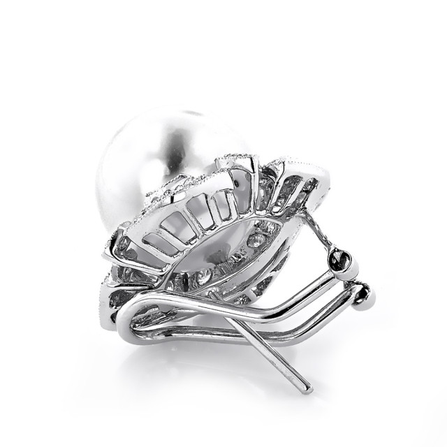 Women's 18K Gold Pearl Diamond Earrings | Pave Set | Omega Back | 1.64ct