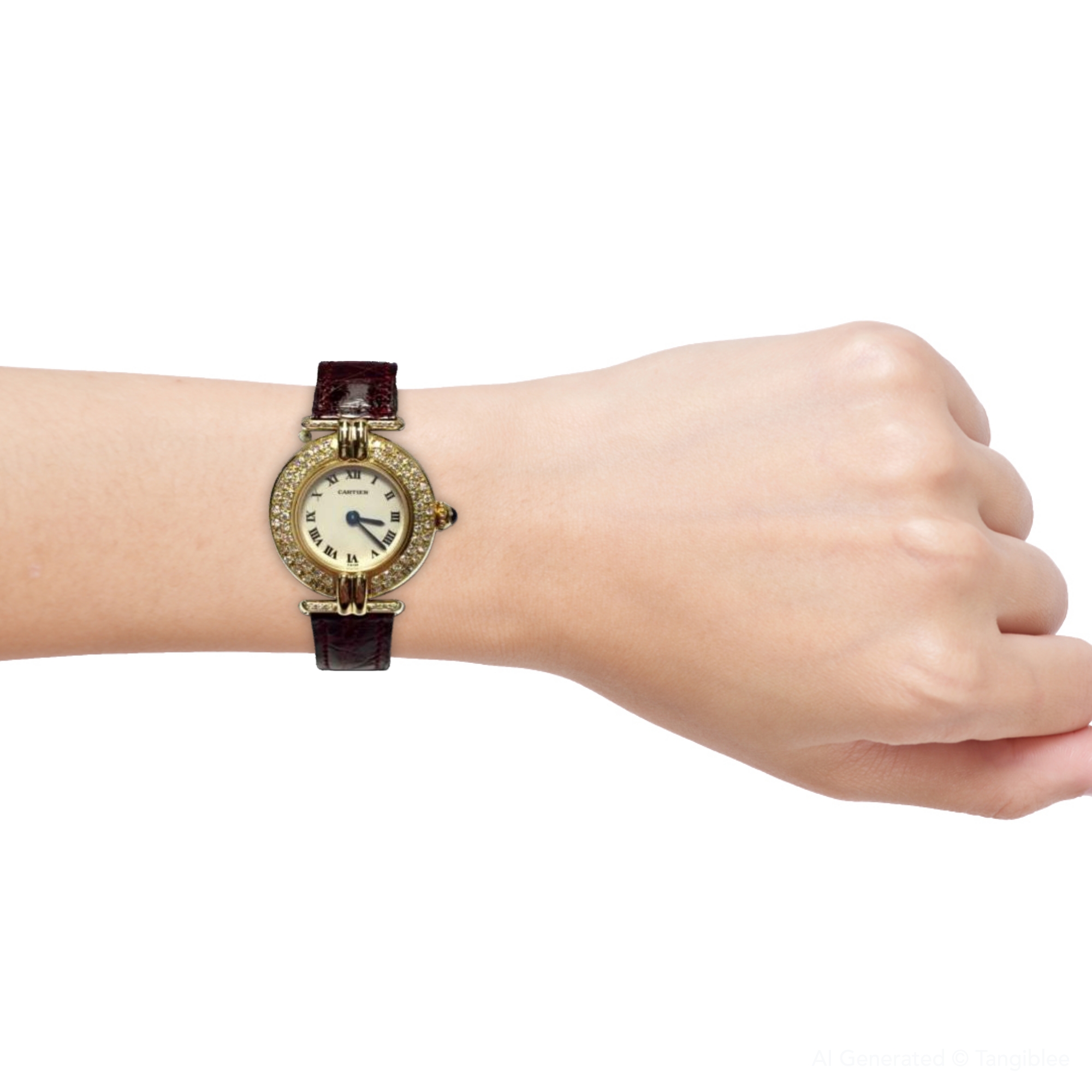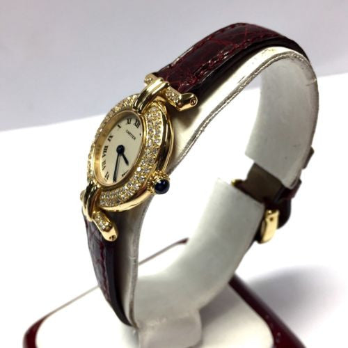 This Women's Cartier Colisee. The watch is made of 18k Gold, offering a premium feel. The case measures 24 mm. The dial is White, and comes with a seller's warranty of months. Also available on custom order with additional options.