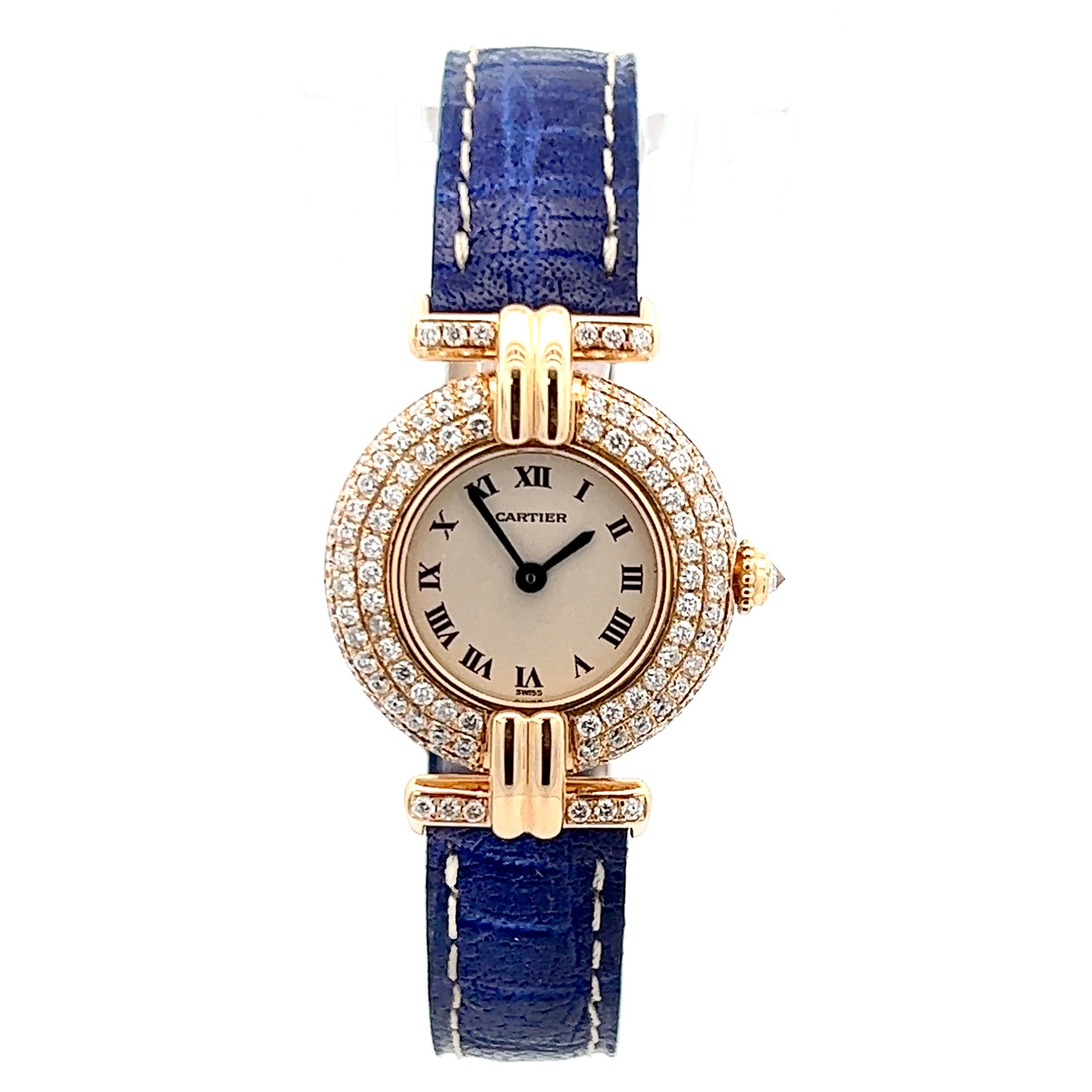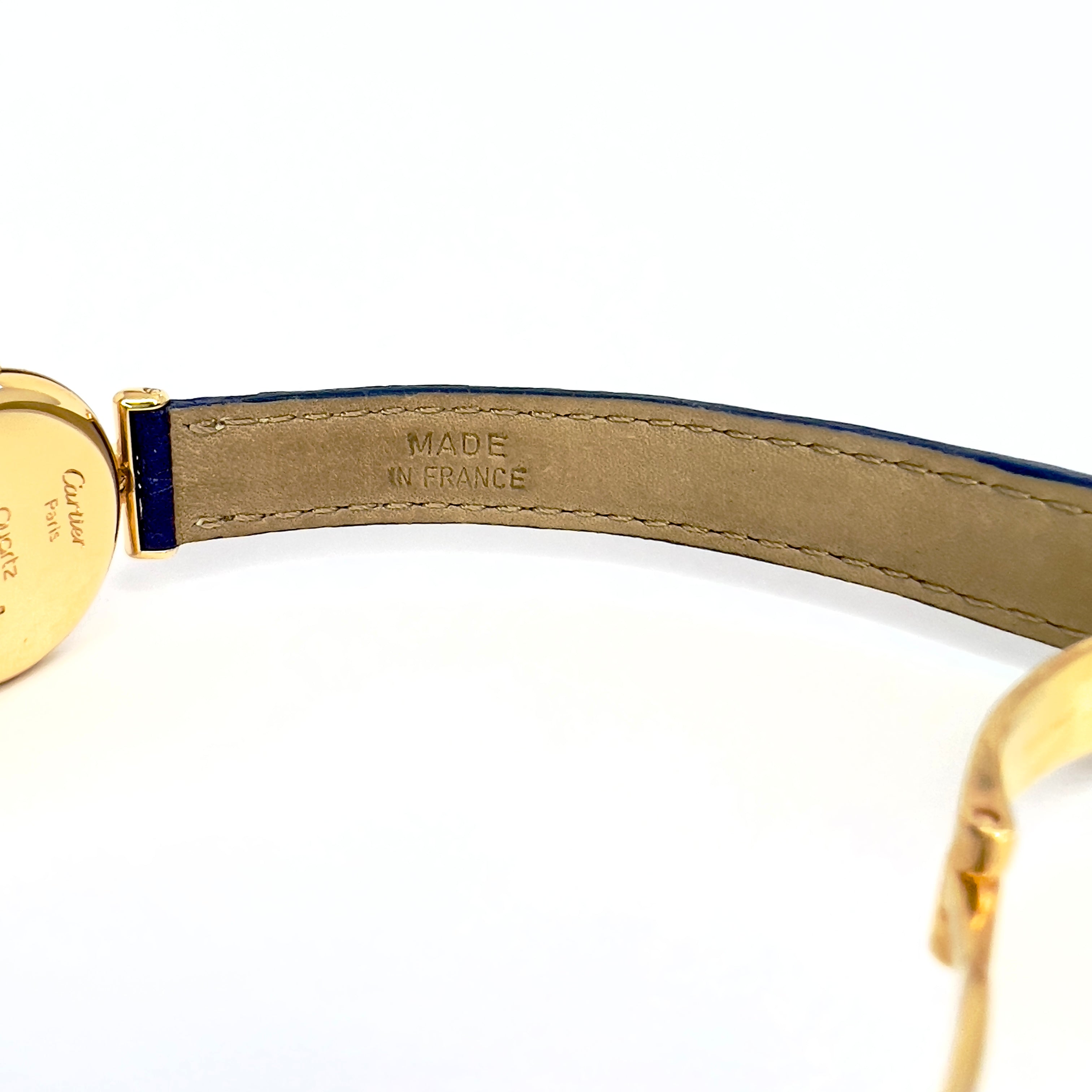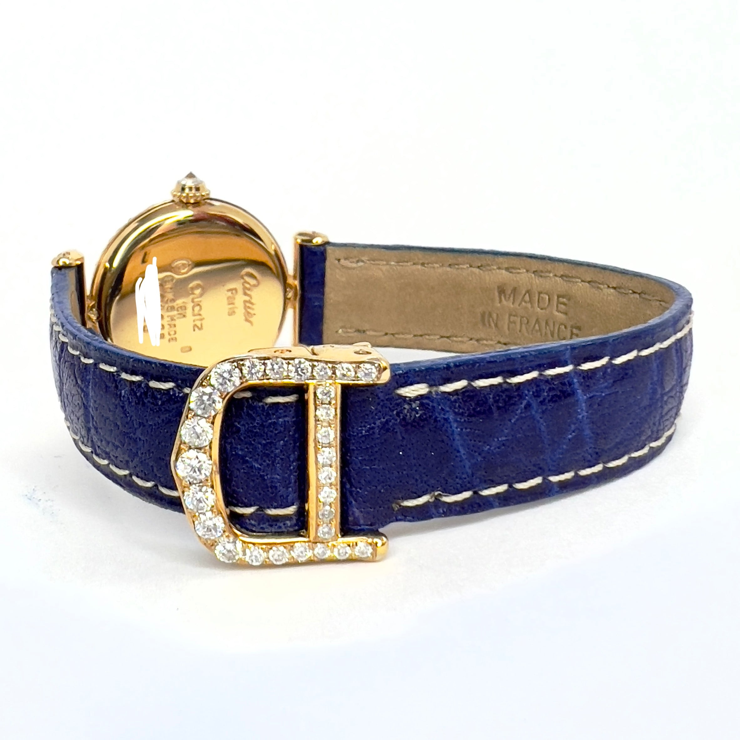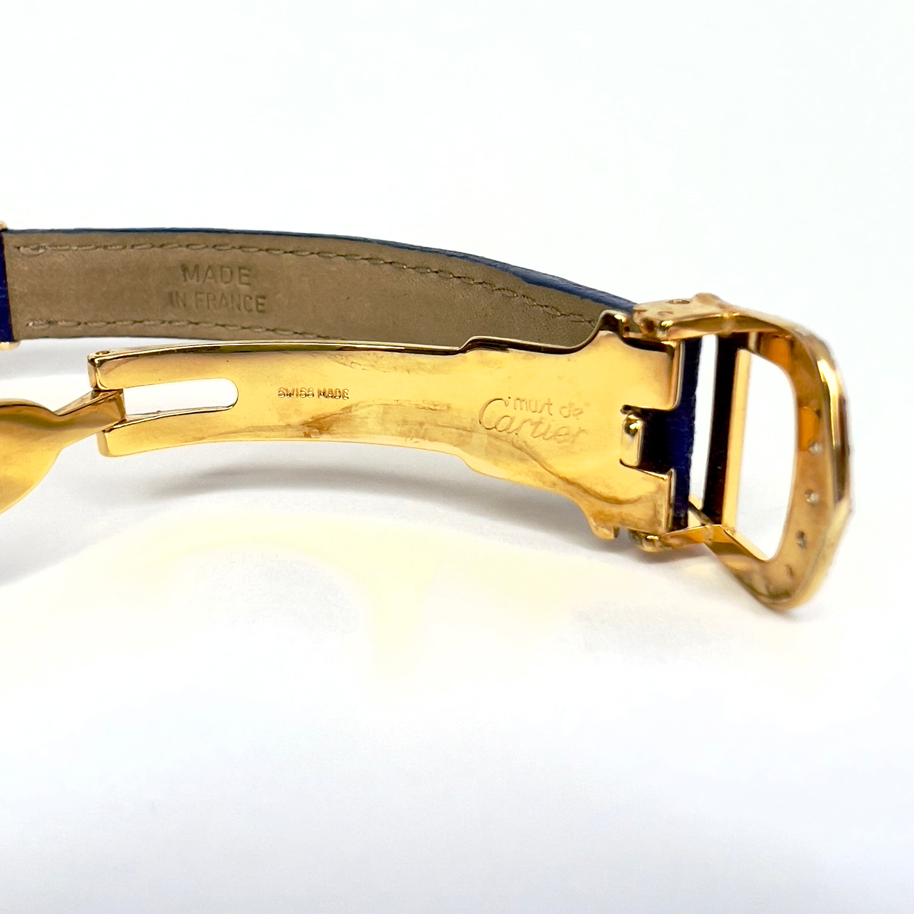This Women's Cartier Colisee is a luxurious and stylish watch. The watch is made of 18k Gold, offering a premium feel. The case measures 24 mm. The case is crafted from 18k Gold. The bracelet is made of Blue Genuine Leather. The bezel is made of Gold and is set with White. The dial is White, enhancing its visual appeal. Powered by a Quartz movement. Offered in Good condition, and comes with a seller's warranty of 60 months. Also available on custom order with additional options.