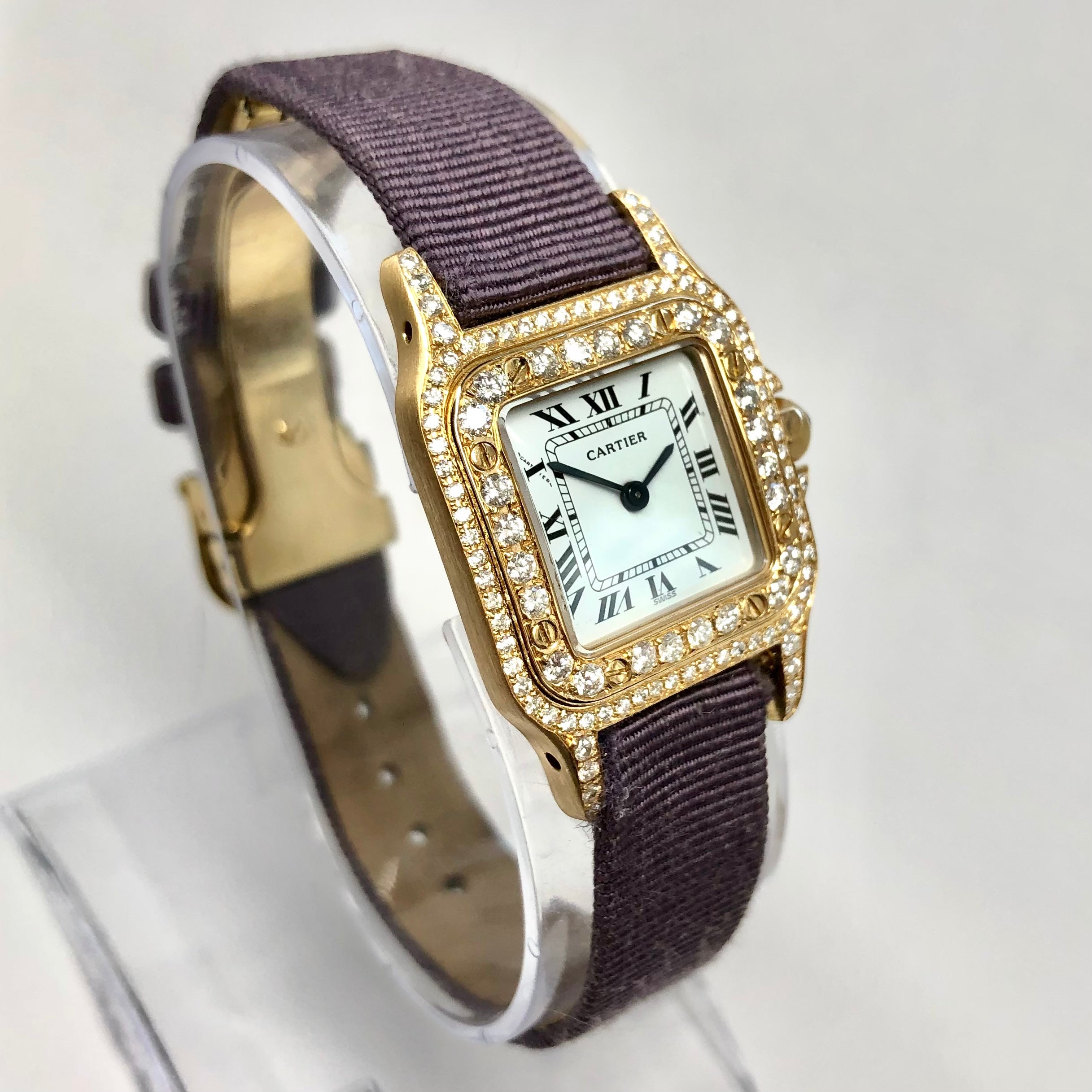 This Women's Cartier Santos is a luxurious and stylish watch. The watch is made of 18k Gold, offering a premium feel. The case measures 24 mm. The case is crafted from 18k Gold. The bracelet is made of Genuine Leather and is set with White. The dial is White, enhancing its visual appeal. Powered by a Quartz movement. Offered in Good condition, and comes with a seller's warranty of 60 months. Also available on custom order with additional options.