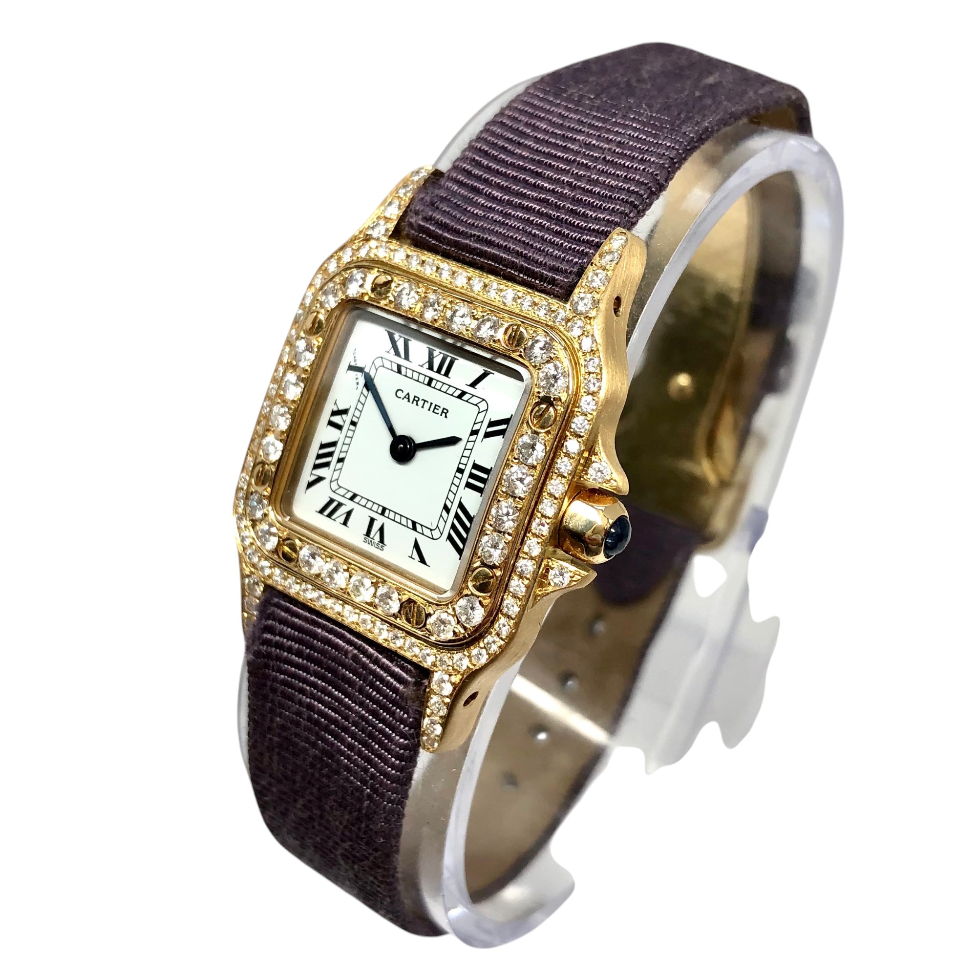 Women's 18K Gold Watch | Cartier Santos 24 mm | White Dial