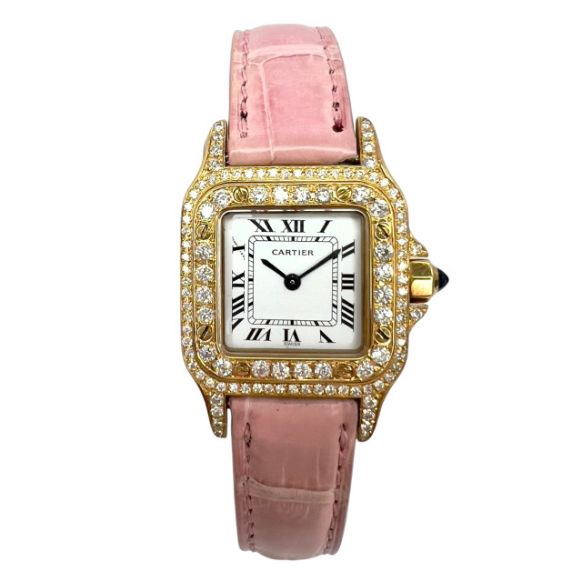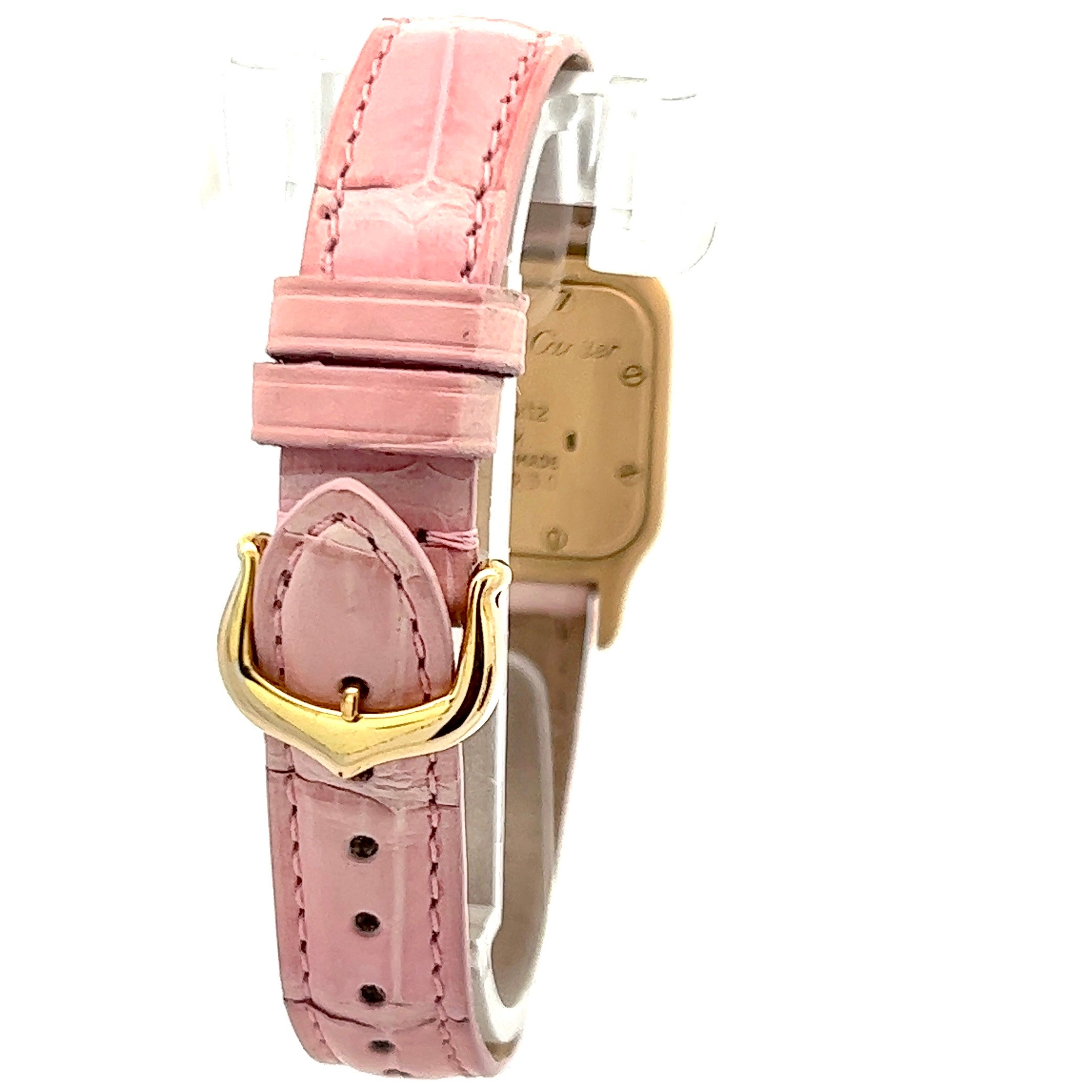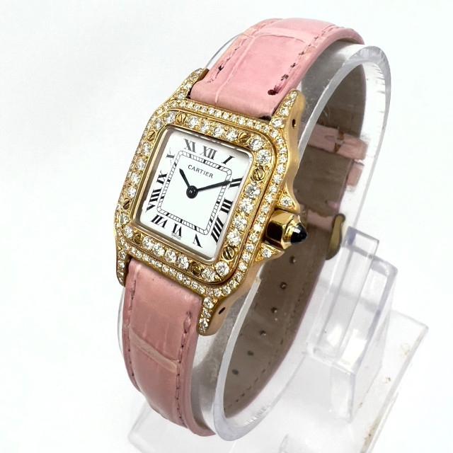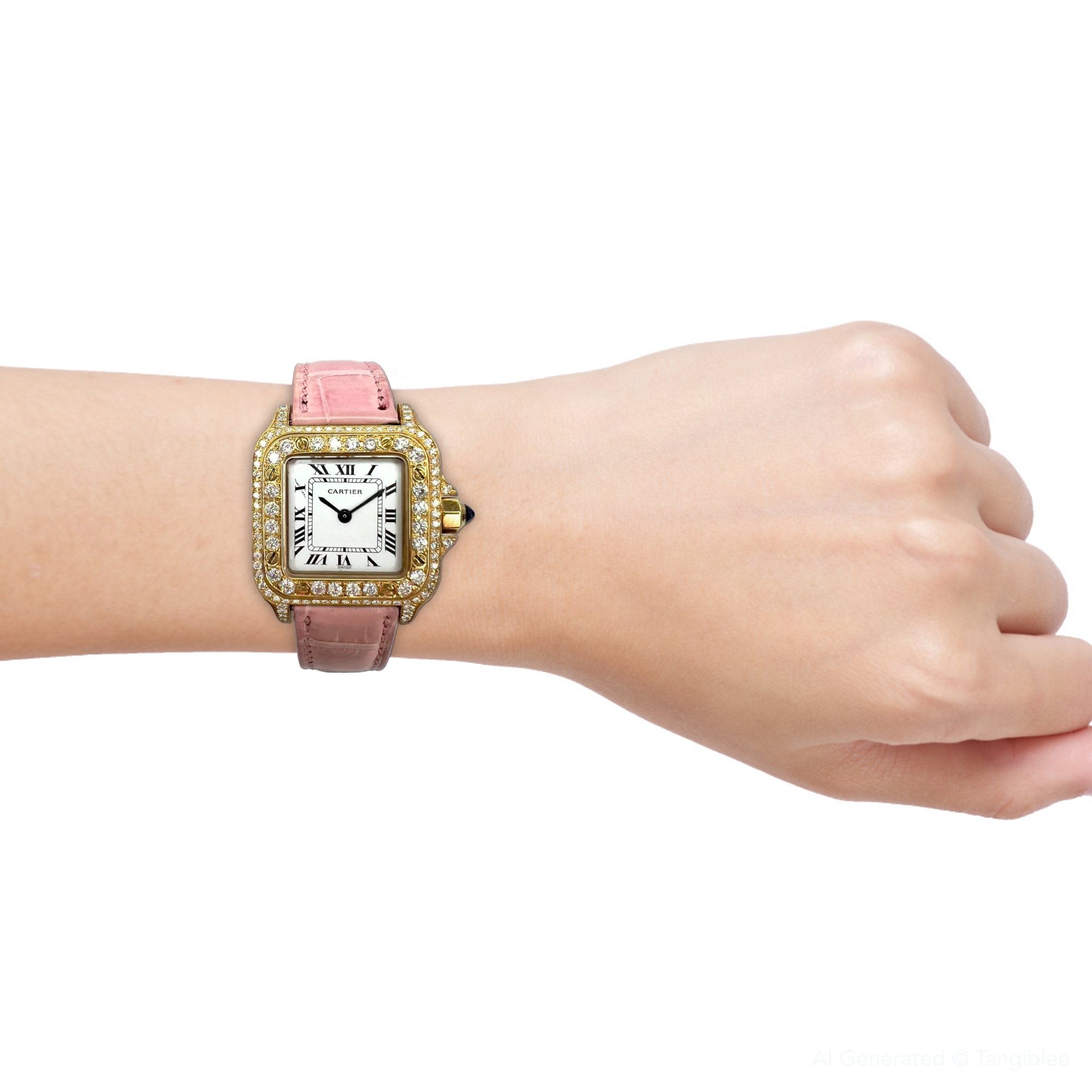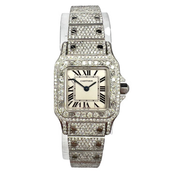 This Women's Cartier Santos Galbee is a luxurious and stylish watch. The watch is made of 18k Gold, offering a premium feel. The case measures 24 mm. The case is crafted from 18k Gold. And is set with White. The dial is White, enhancing its visual appeal. Powered by a Quartz movement. Offered in Good condition, and comes with a seller's warranty of 60 months. Also available on custom order with additional options.