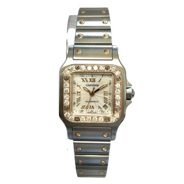Women's 18K Gold Watch | Cartier Santos Galbee 24 mm | White Dial