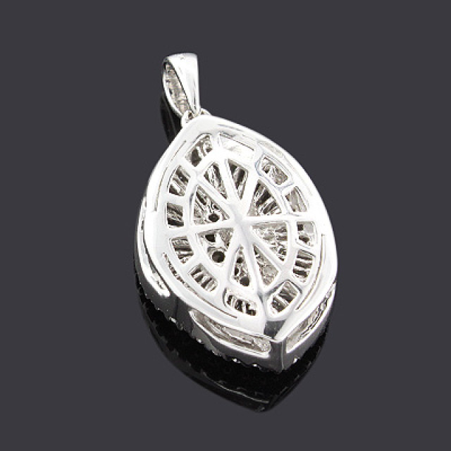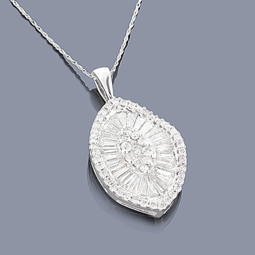 This Women's Diamond pendant is made from 14k Gold, weighing 5 grams and is 15 mm wide. This Women's Diamond pendant is designed in a shape and features 2.19 carats of White Diamonds, and is available in 14k white gold, yellow gold and rose gold as well as 18k gold and platinum as a custom order.