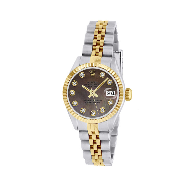 This Women's Two-Tone Rolex Datejust is a luxurious and stylish watch. It features a White/Yellow color scheme, adding sophistication to its design. The watch is made of Gold/Stainless Steel, offering a premium feel. The case measures 26 mm. The bracelet is made of Stainless Steel It features a Jubilee style bracelet for a comfortable fit. The bezel is made of Yellow Gold. The dial is Black, enhancing its visual appeal. Powered by an Automatic movement. Offered in Very Good condition, and comes with a seller's warranty of 60 months. Also available on custom order with additional options. These pre-owned Rolex watches are authentic Rolex watches with genuine diamonds, in excellent condition, they are checked for authenticity and basic water resistance. Watches will withstand an occasional rain just fine, but they are not diver's watches and should not be worn in shower or while swimming.