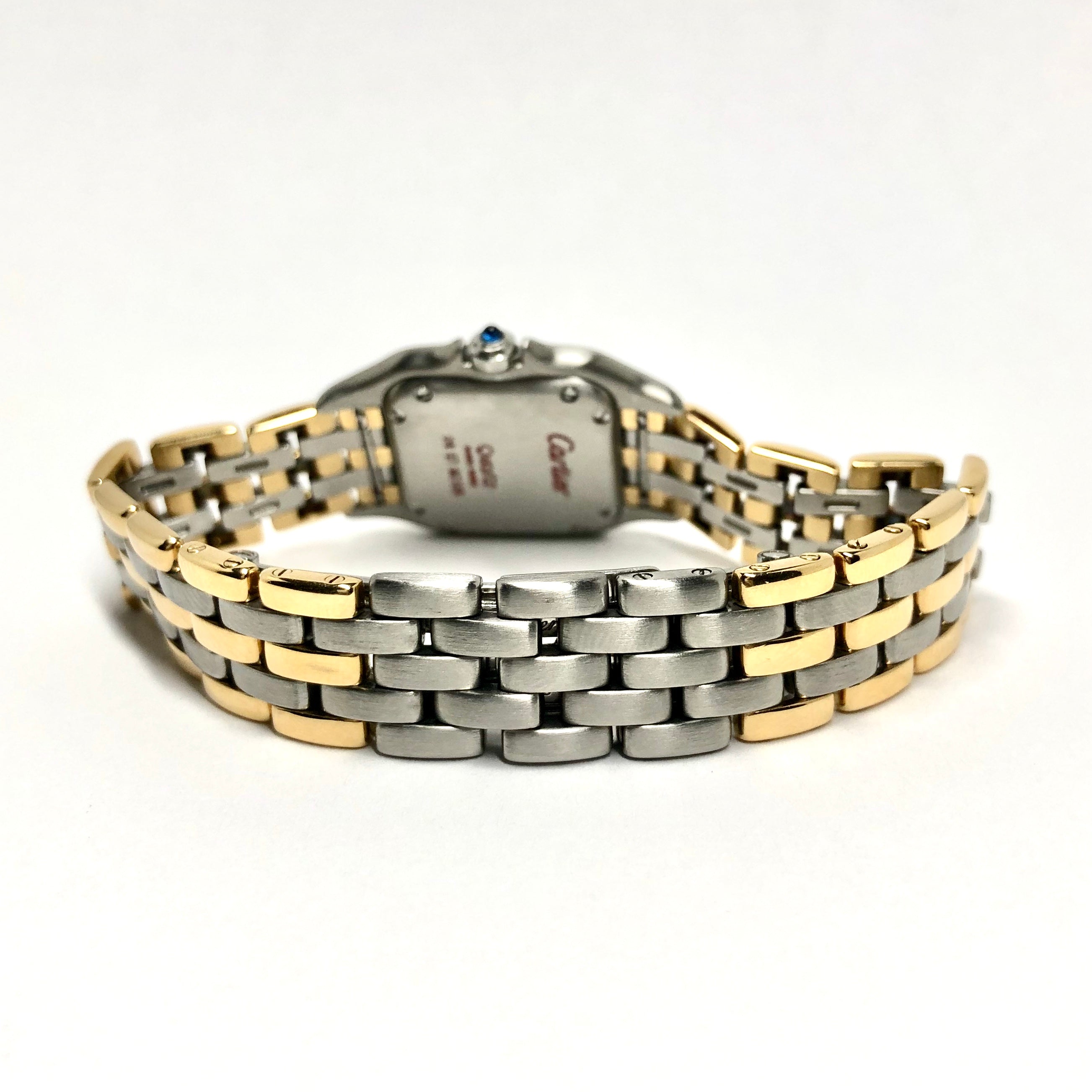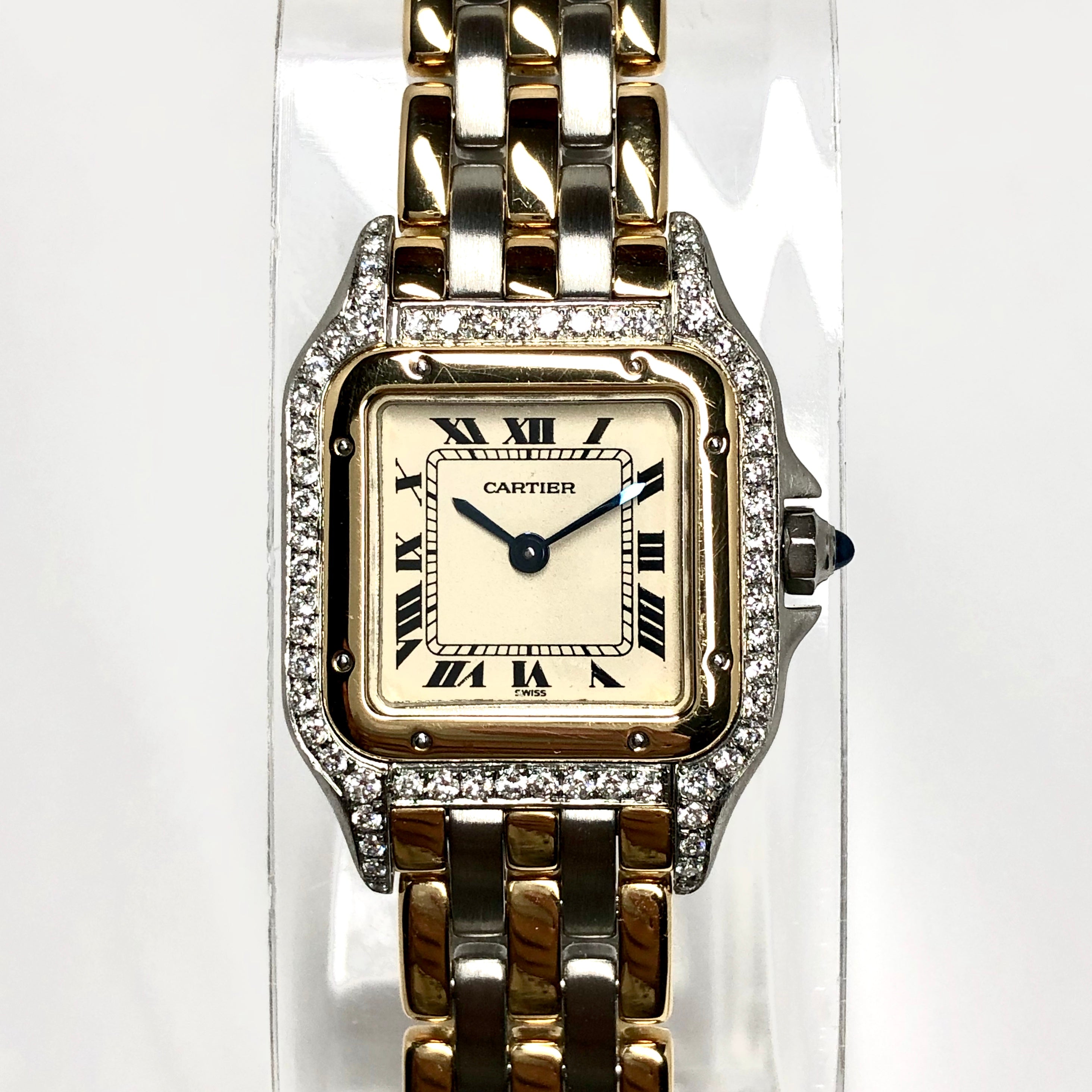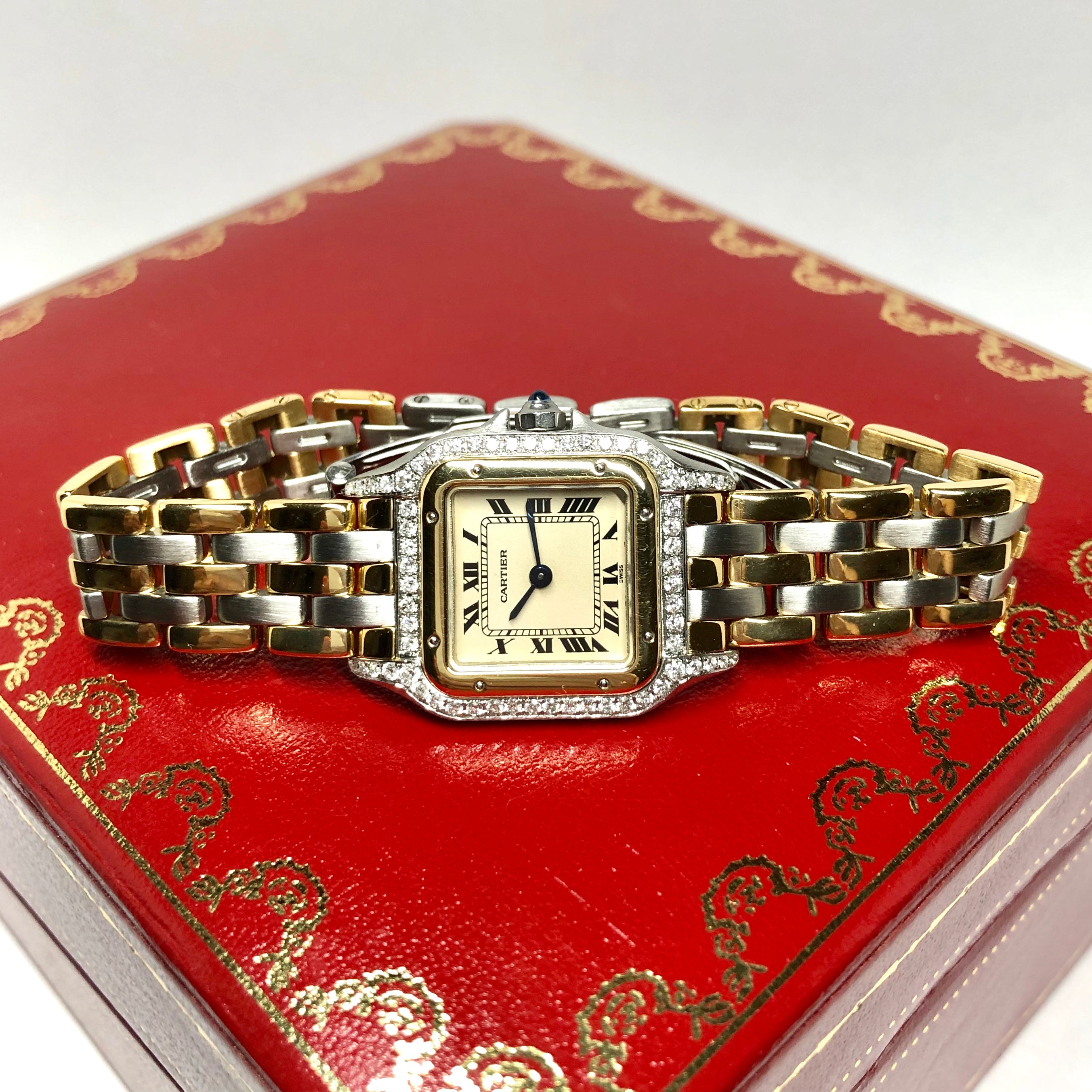 This Women's Two-Tone Cartier La Panthere is a luxurious and stylish watch. The watch is made of Gold/Stainless Steel, offering a premium feel. The case measures 22 mm. The bracelet is made of Yellow Gold. The bezel is made of Gold. The dial is Cream, enhancing its visual appeal. Powered by a Swiss-Quartz movement. Offered in Good condition, and comes with a seller's warranty of 60 months. Also available on custom order with additional options.
