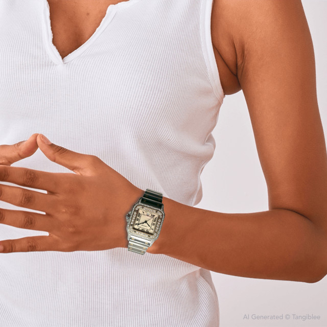 This Women's Two-Tone Cartier Santos de Cartier Galbee is a luxurious and stylish watch. The watch is made of Gold/Stainless Steel, offering a premium feel. The case measures 29 mm. The bracelet is made of Yellow Gold. The bezel is made of Gold and is set with White. The dial is Cream, enhancing its visual appeal. Powered by a Quartz movement, the watch includes functions such as Date Indicator. Offered in Good condition, and comes with a seller's warranty of 60 months. Also available on custom order with additional options.