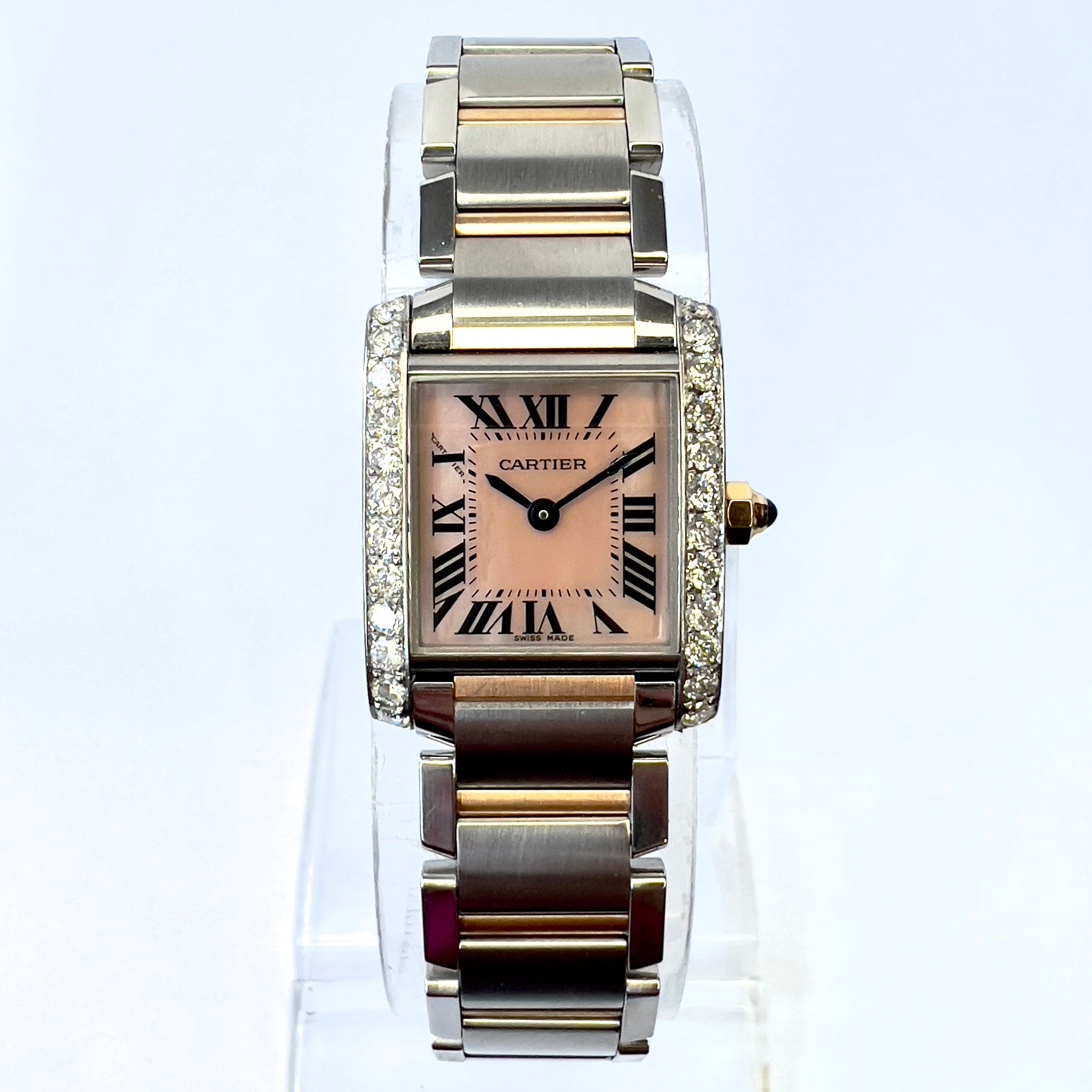 Women's Gold/Stainless Steel Watch | Cartier Tank Francaise 20 mm | Pink Dial