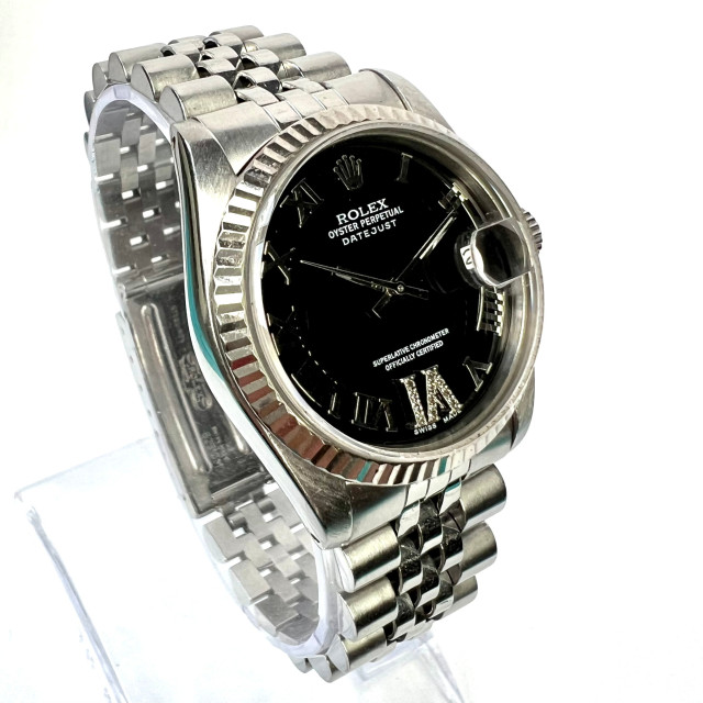 This Women's Rolex Oyster Perpetual Datejust is a luxurious and stylish watch. The watch is made of Gold/Stainless Steel, offering a premium feel. The case measures 31 mm. The bracelet is made of Stainless Steel It features a Jubilee style bracelet for a comfortable fit. The bezel is made of White Gold. The dial is Black, enhancing its visual appeal. Powered by an Automatic movement, the watch includes functions such as Date Indicator. Offered in Very Good condition, and comes with a seller's warranty of 60 months. Also available on custom order with additional options. These pre-owned Rolex watches are authentic Rolex watches with genuine diamonds, in excellent condition, they are checked for authenticity and basic water resistance. Watches will withstand an occasional rain just fine, but they are not diver's watches and should not be worn in shower or while swimming.
