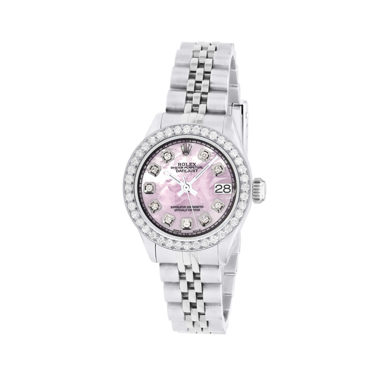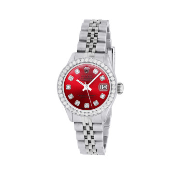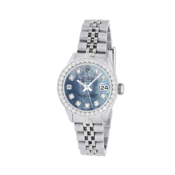 This Women's Rolex Datejust is a luxurious and stylish watch. The watch is made of Stainless Steel, offering a premium feel. The case measures 26 mm. The bracelet is made of Stainless Steel and is set with White Diamonds. enhancing its visual appeal. Powered by an Automatic movement. Offered in Good condition, and comes with a seller's warranty of 60 months. Also available on custom order with additional options. These pre-owned Rolex watches are authentic Rolex watches with genuine diamonds, in excellent condition, they are checked for authenticity and basic water resistance. Watches will withstand an occasional rain just fine, but they are not diver's watches and should not be worn in shower or while swimming.
