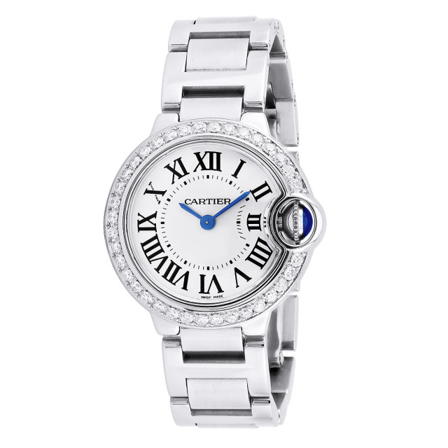 Women's Stainless Steel Watch | Cartier Ballon Bleu 28 mm | Silver Dial