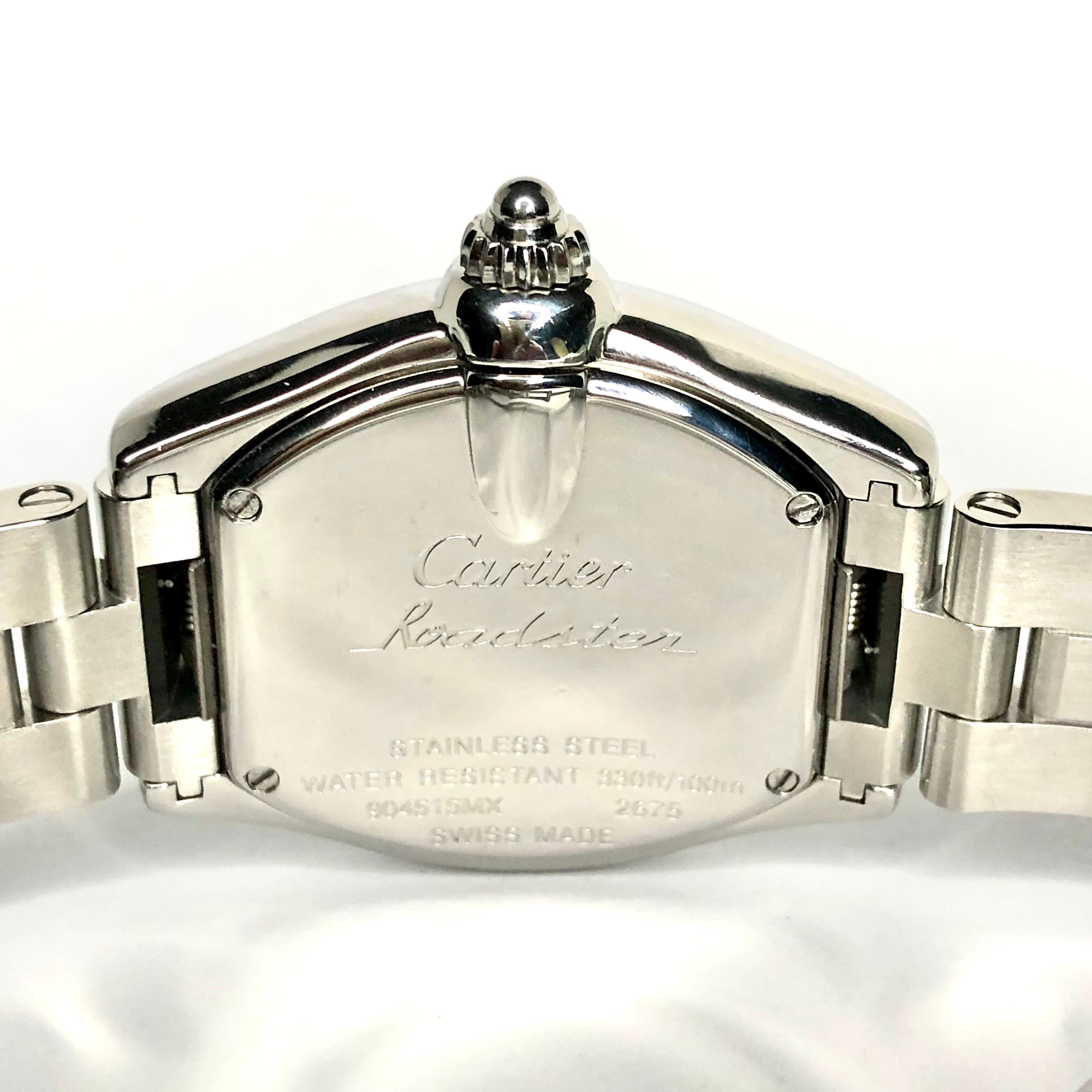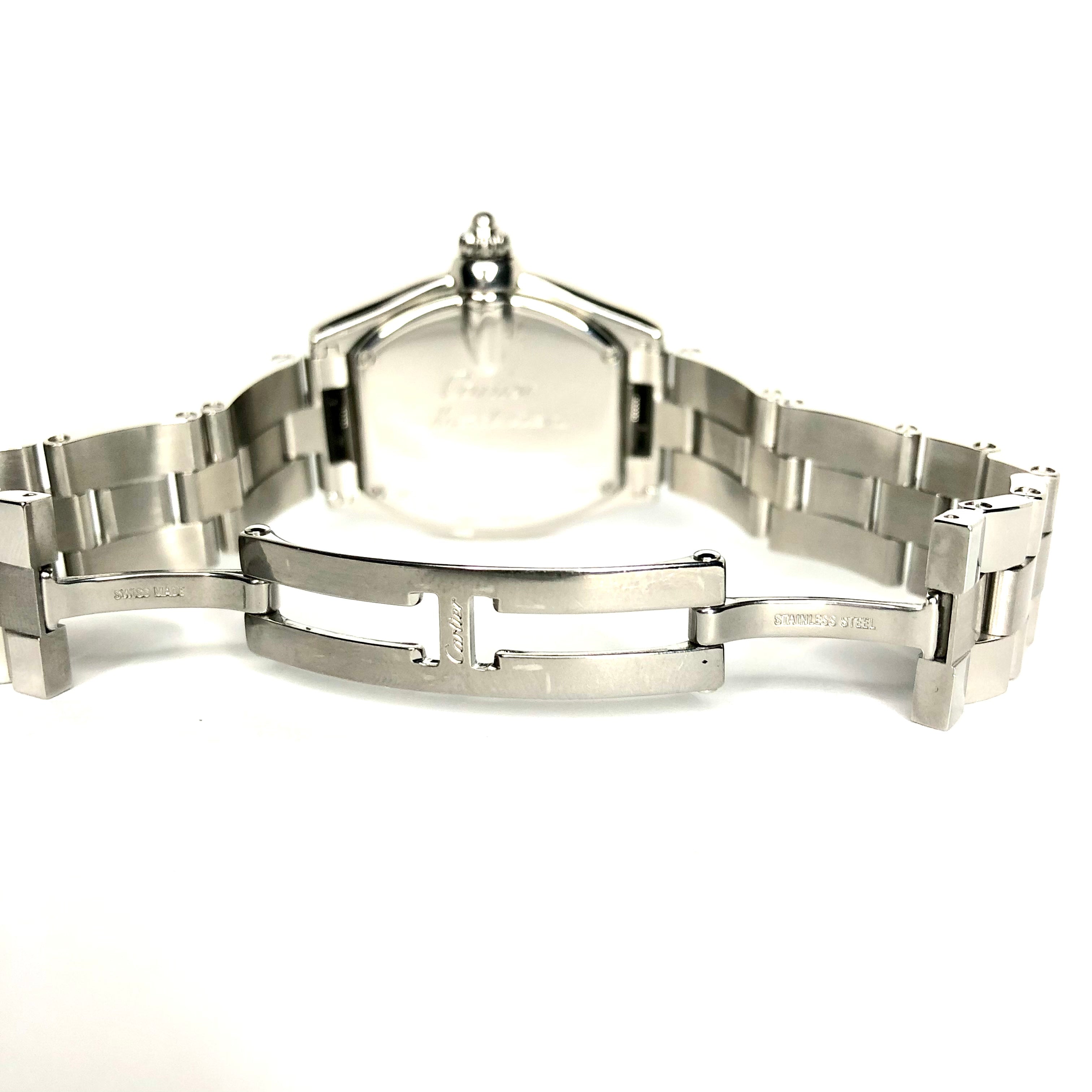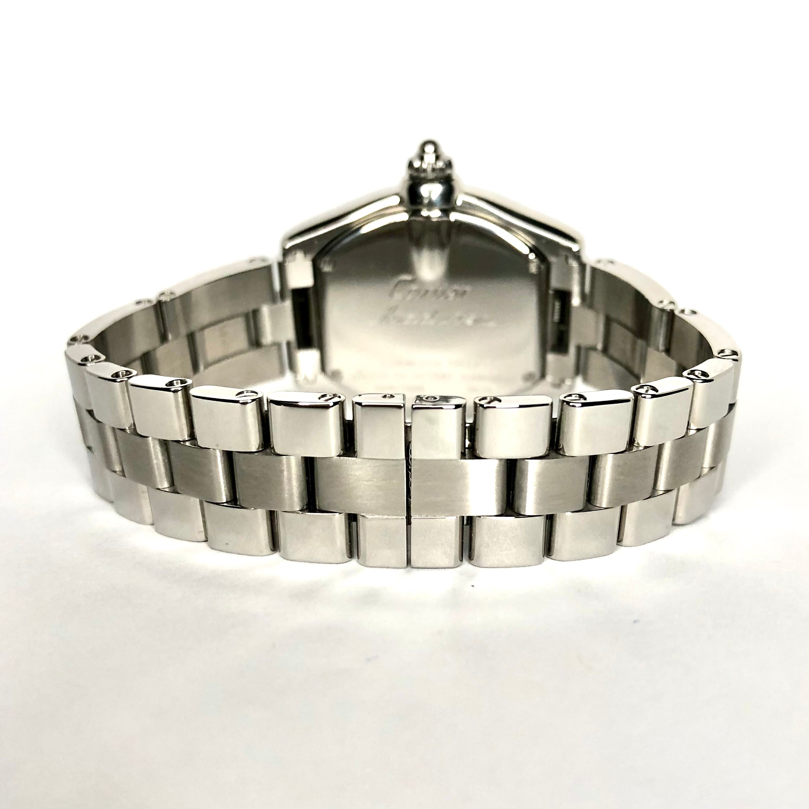 This Women's Cartier Roadster is a luxurious and stylish watch. The watch is made of Stainless Steel, offering a premium feel. The case measures 31 mm. The bracelet is made of Stainless Steel. The bezel is made of Stainless Steel and is set with White. The dial is Pink, enhancing its visual appeal. Powered by a Quartz movement, the watch includes functions such as Date Indicator. Offered in Good condition, and comes with a seller's warranty of 60 months. Also available on custom order with additional options.