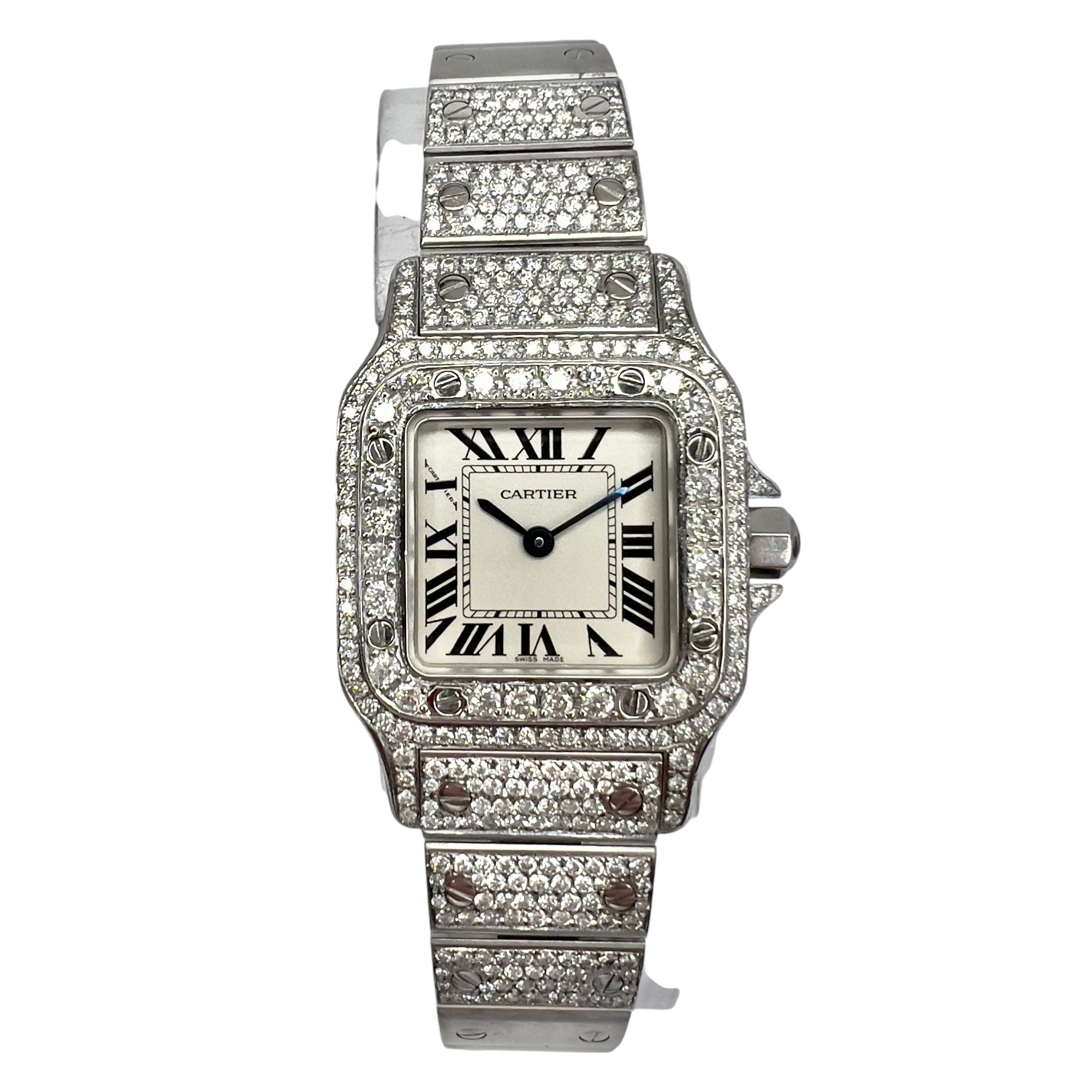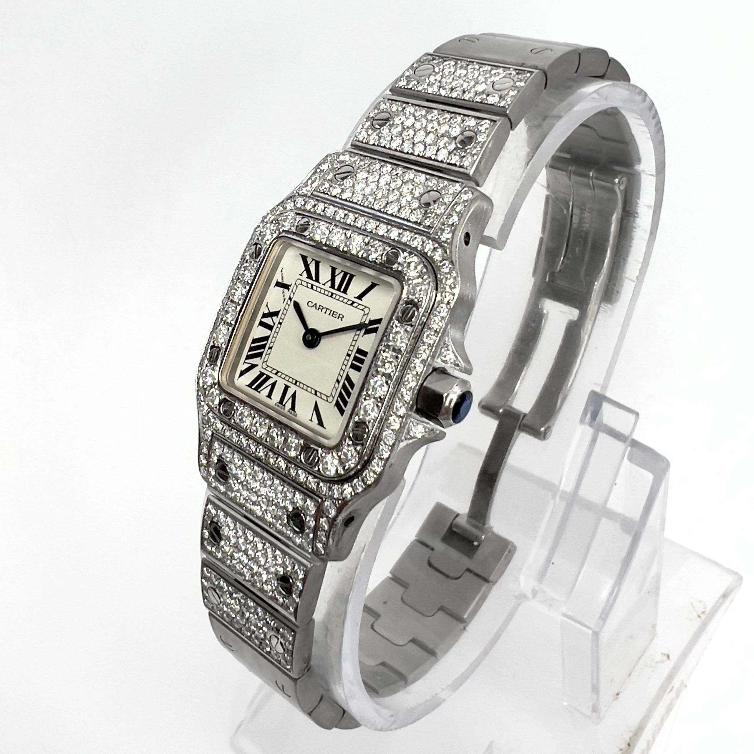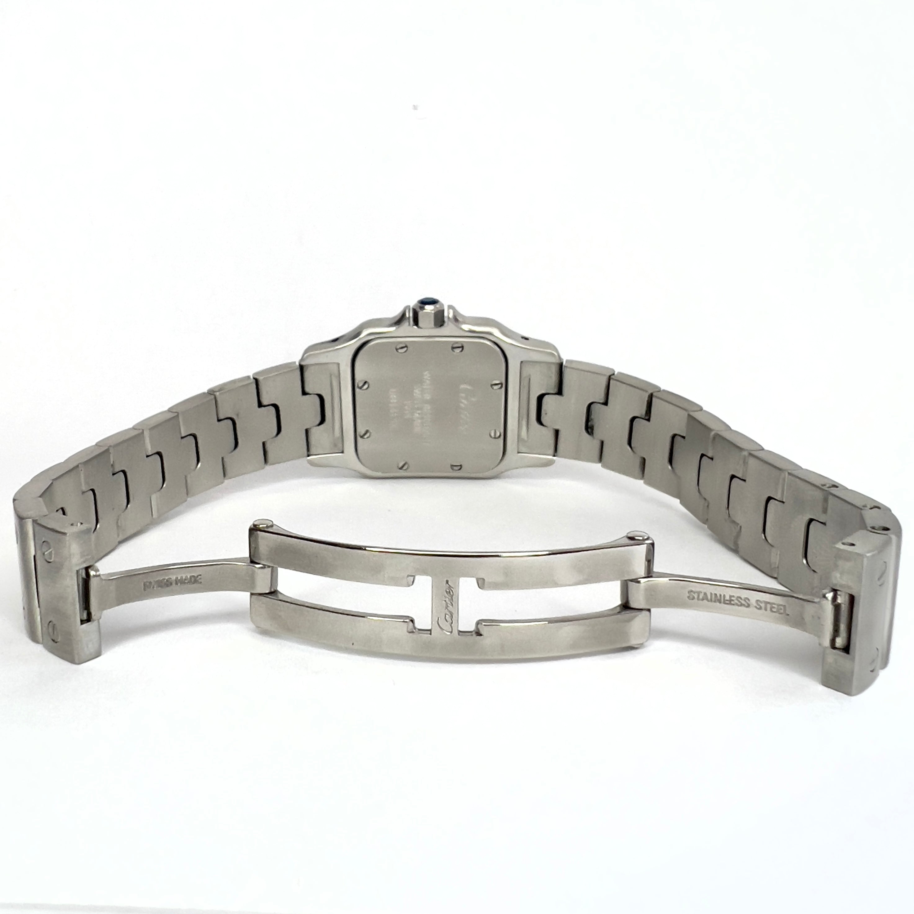 This Women's Cartier Santos de Cartier Galbee is a luxurious and stylish watch. The watch is made of Stainless Steel, offering a premium feel. The case measures 24 mm. The bracelet is made of Stainless Steel and is set with White. The dial is White, enhancing its visual appeal. Powered by a Quartz movement. Offered in Good condition, and comes with a seller's warranty of 60 months. Also available on custom order with additional options.