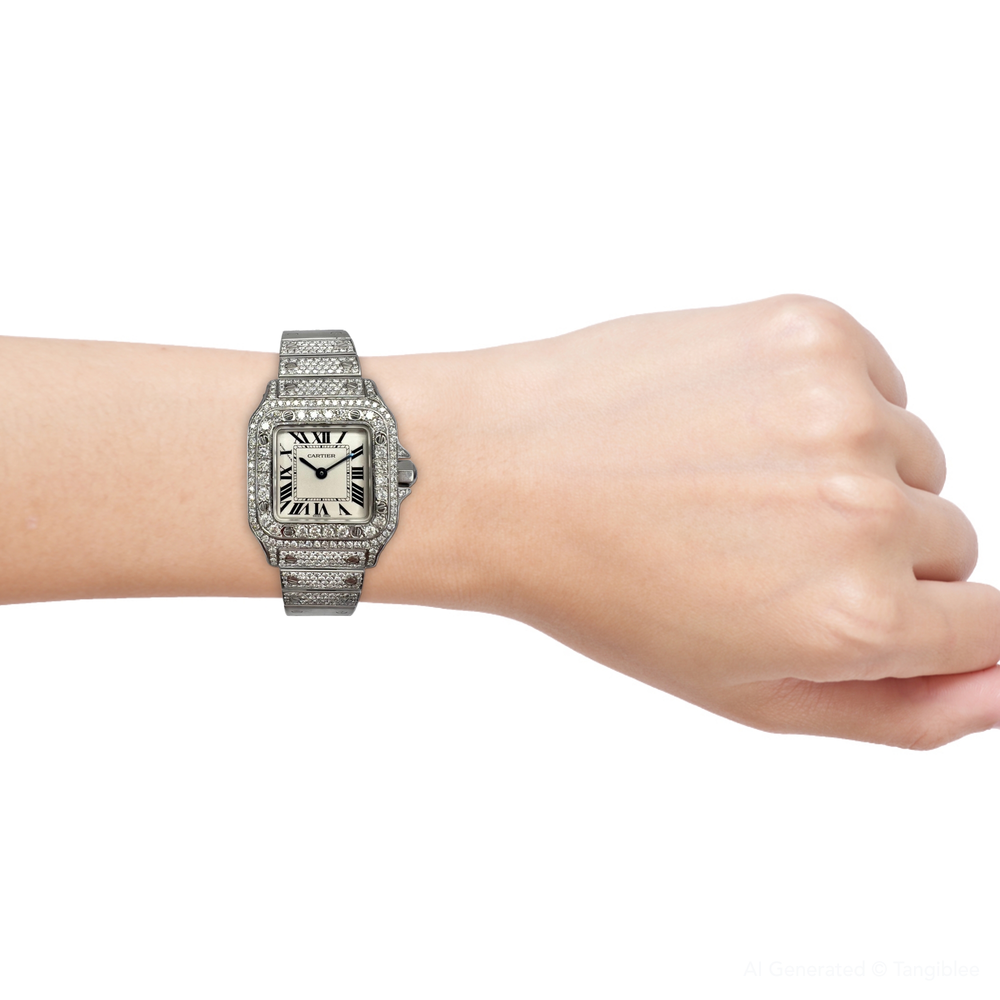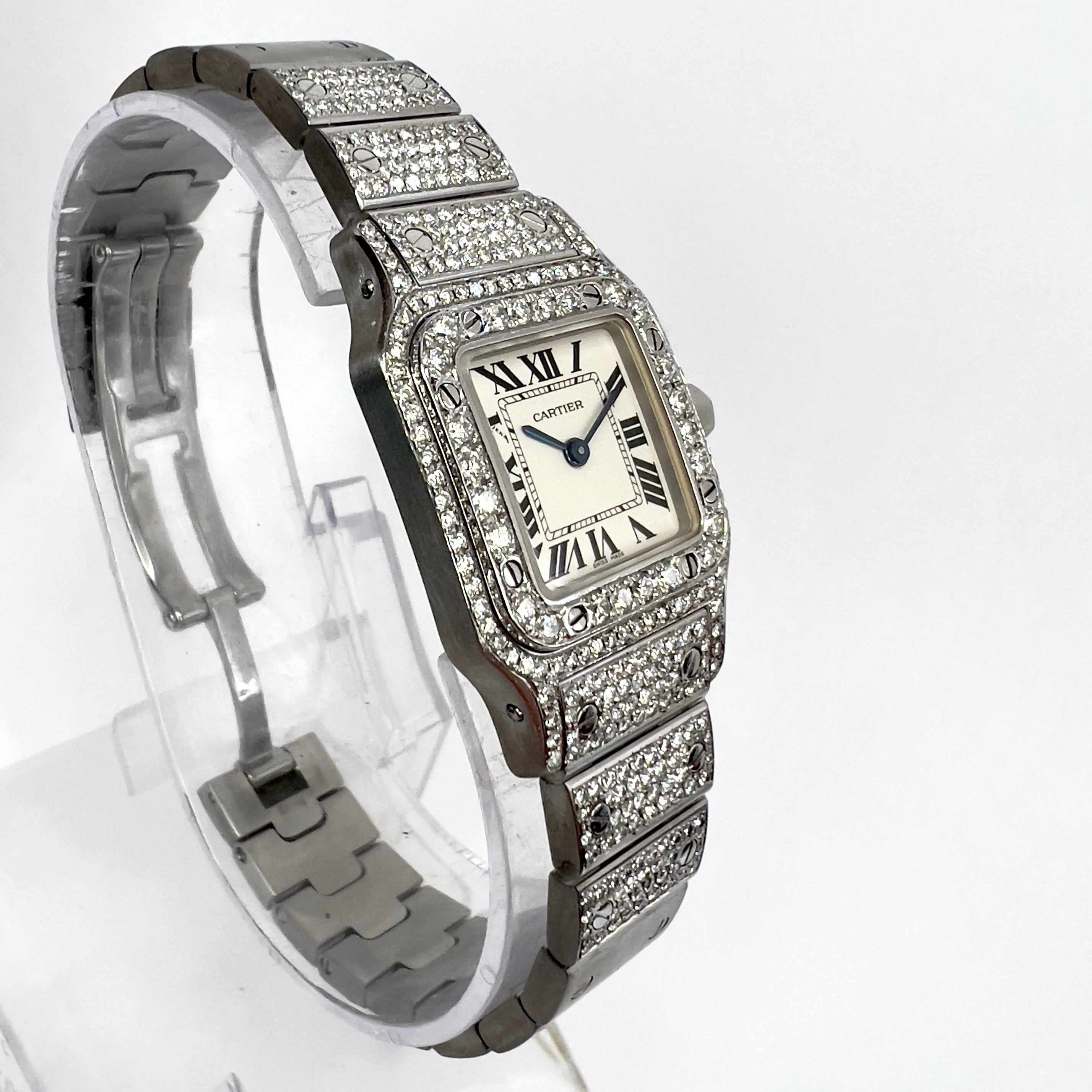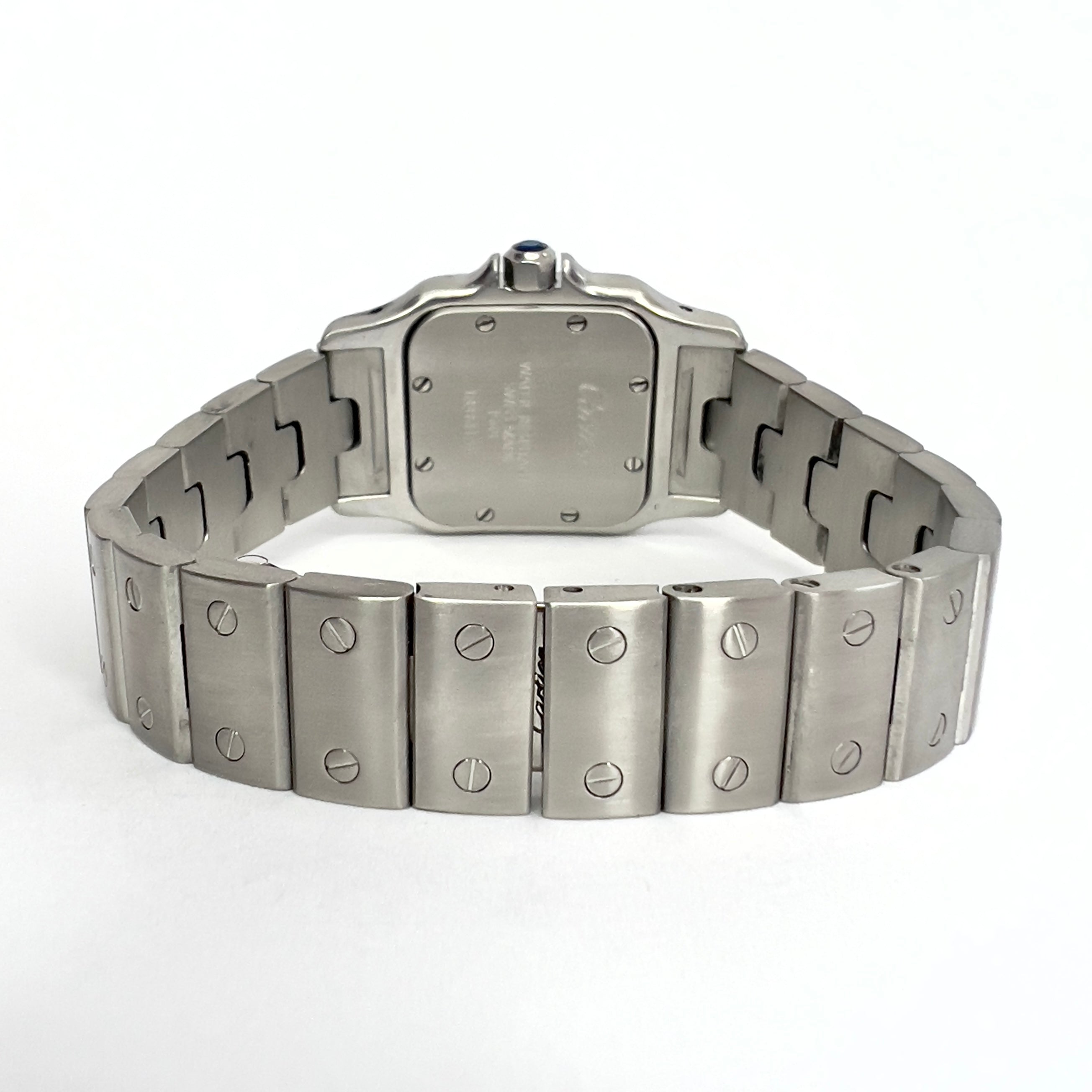 This Women's Cartier Santos de Cartier Galbee is a luxurious and stylish watch. The watch is made of Stainless Steel, offering a premium feel. The case measures 24 mm. The bracelet is made of Stainless Steel and is set with White. The dial is White, enhancing its visual appeal. Powered by a Quartz movement. Offered in Good condition, and comes with a seller's warranty of 60 months. Also available on custom order with additional options.