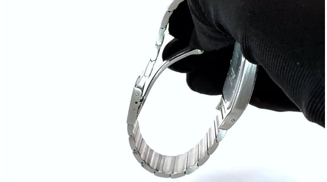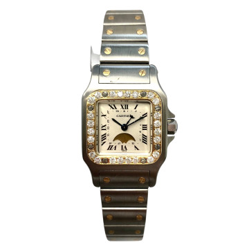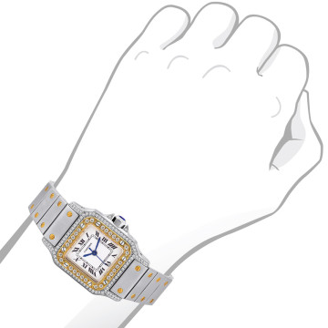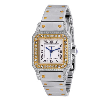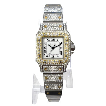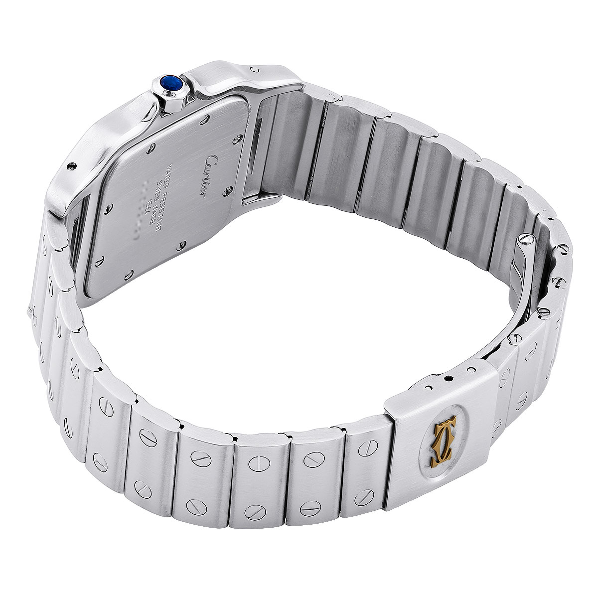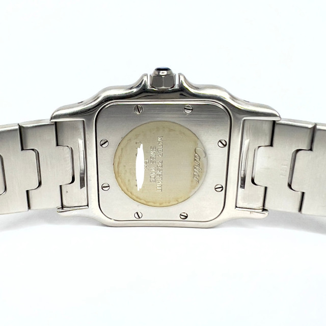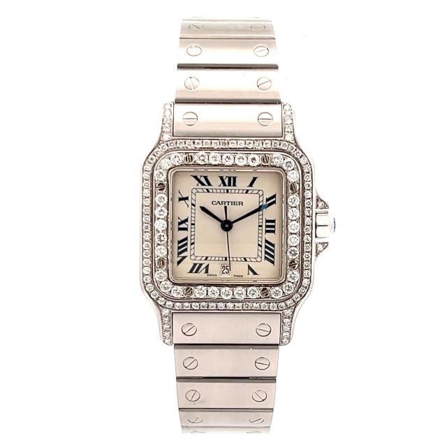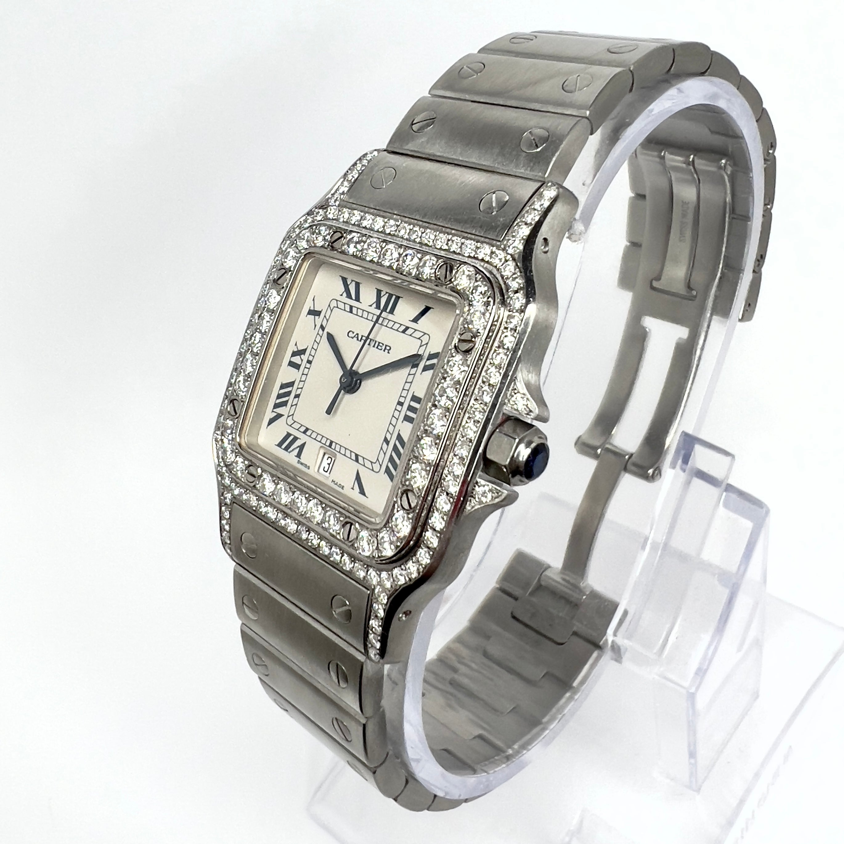 This Women's Cartier Santos de Cartier Galbee is a luxurious and stylish watch. The watch is made of Stainless Steel, offering a premium feel. The case measures 29 mm. The bracelet is made of Stainless Steel and is set with White. The dial is White, enhancing its visual appeal. Powered by a Quartz movement, the watch includes functions such as Date Indicator. Offered in Good condition, and comes with a seller's warranty of 60 months. Also available on custom order with additional options.