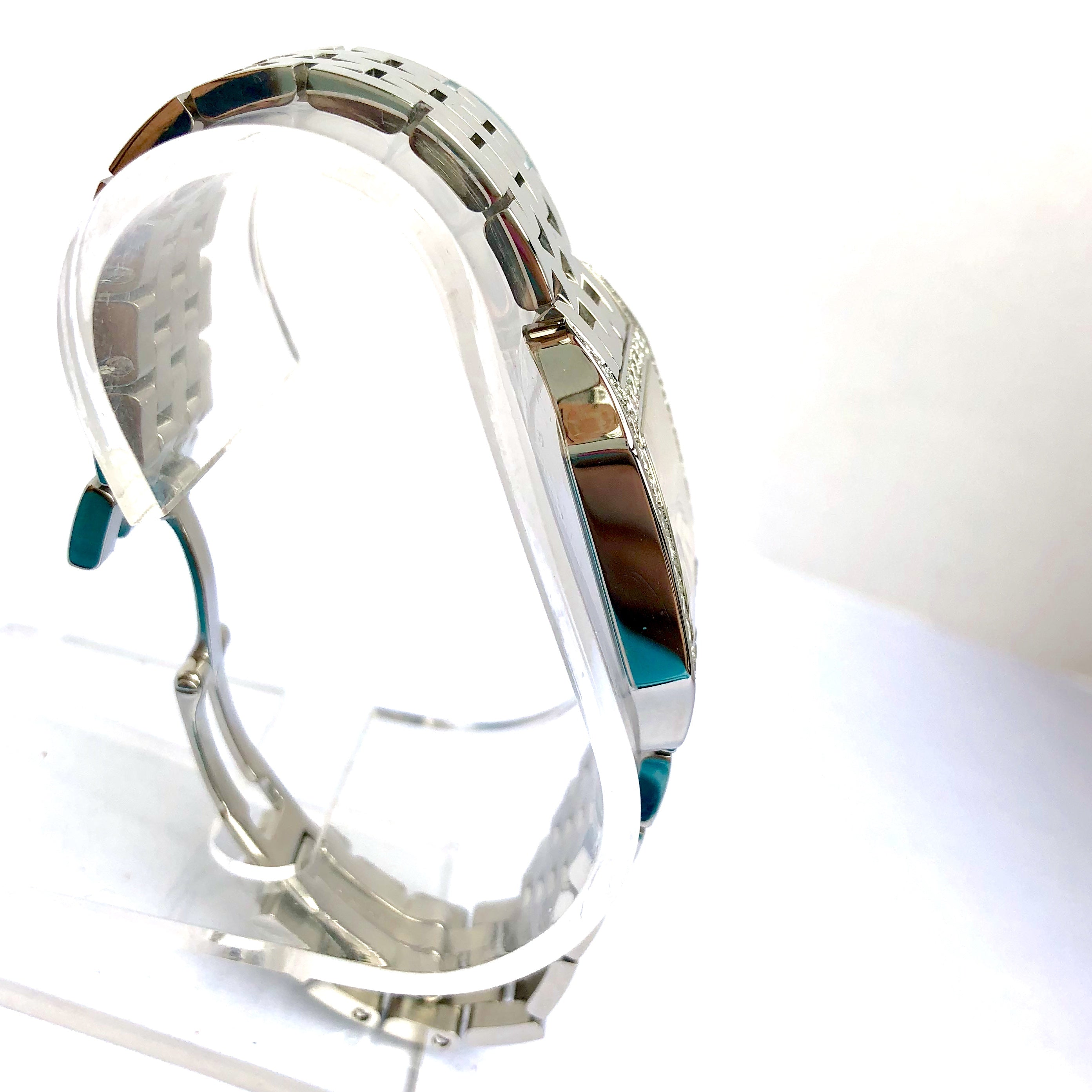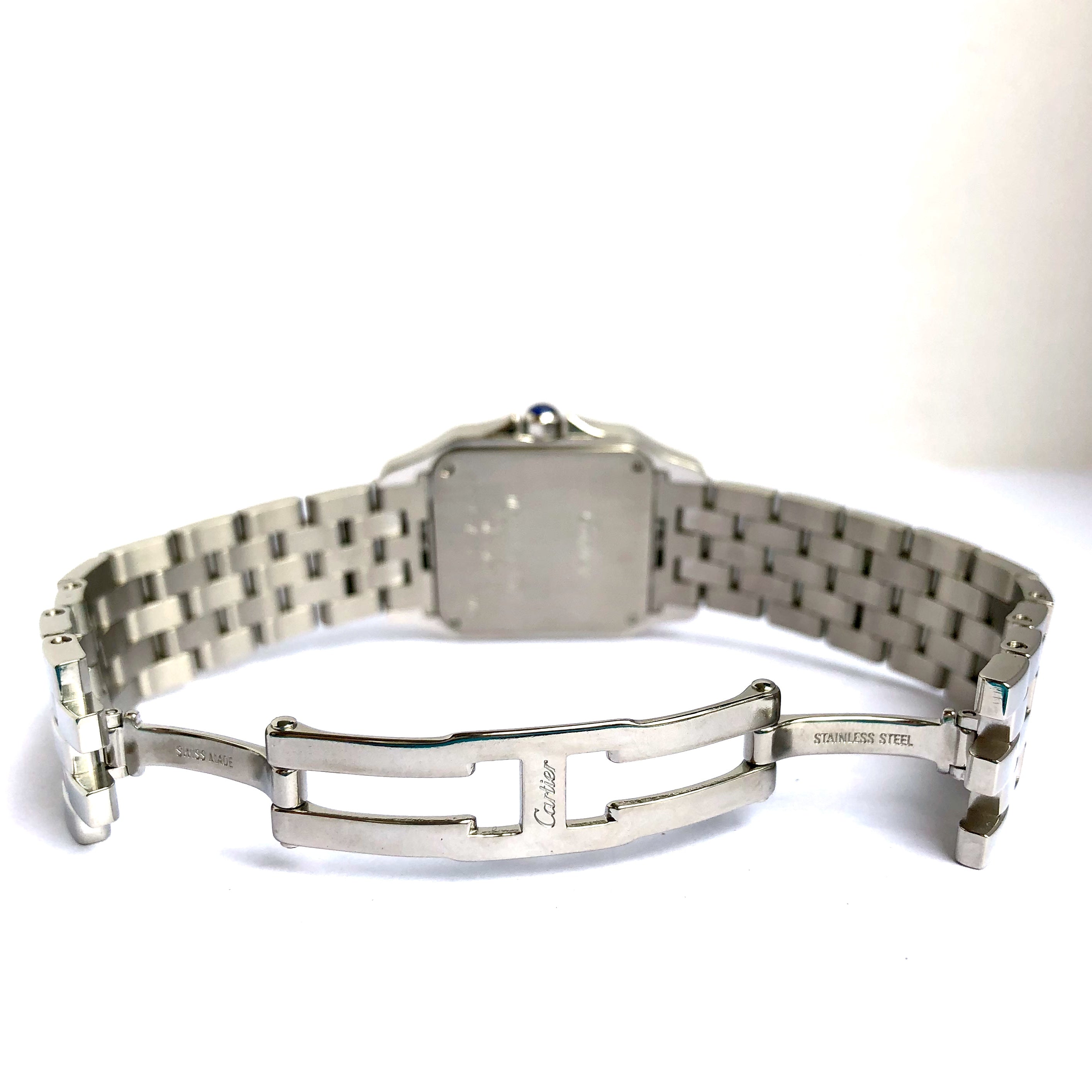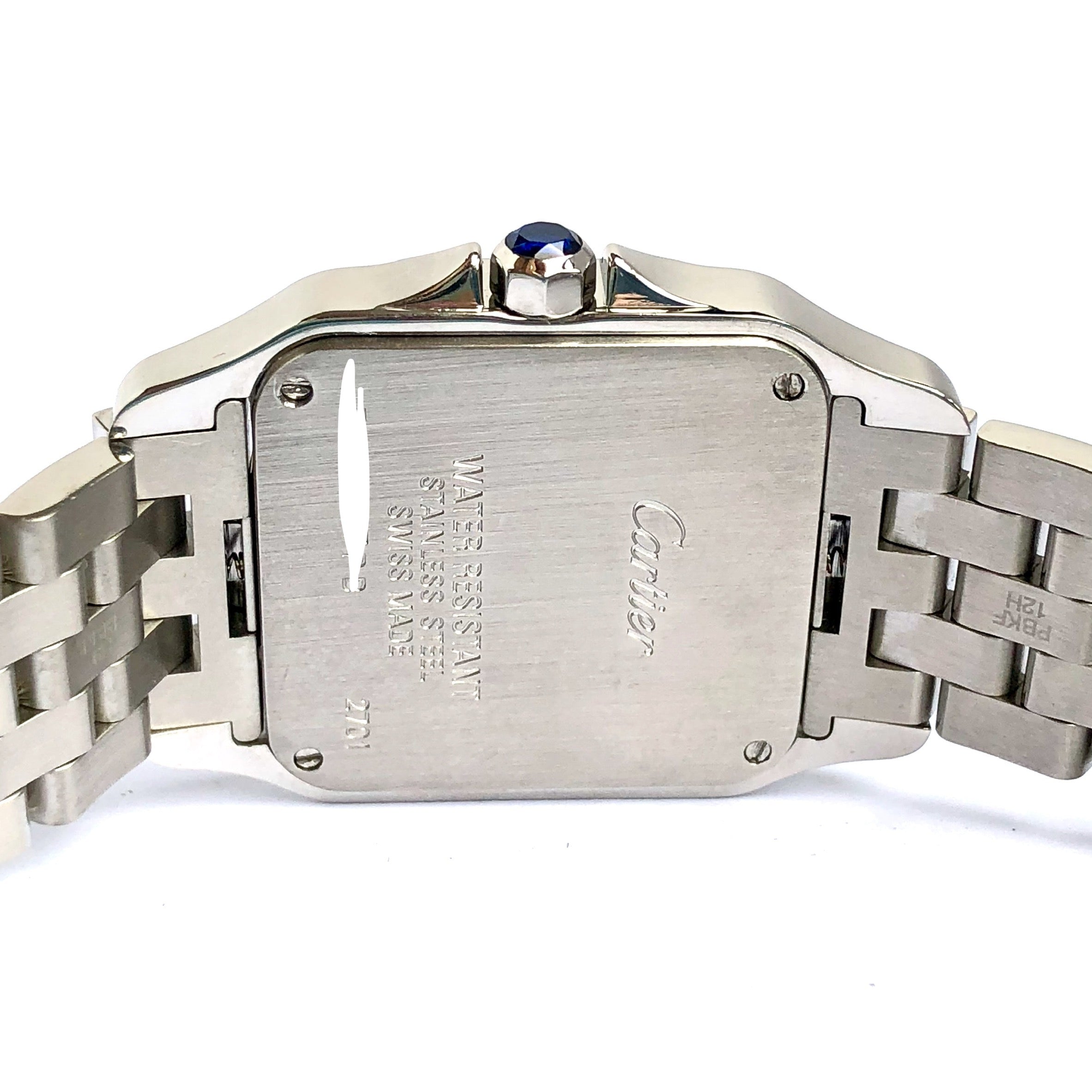 This Women's Cartier Santos Demoiselle is a luxurious and stylish watch. The watch is made of Stainless Steel, offering a premium feel. The case measures 26 mm. The bracelet is made of Stainless Steel and is set with White. The dial is Cream, enhancing its visual appeal. Powered by a Quartz movement. Offered in Good condition, and comes with a seller's warranty of 60 months. Also available on custom order with additional options.