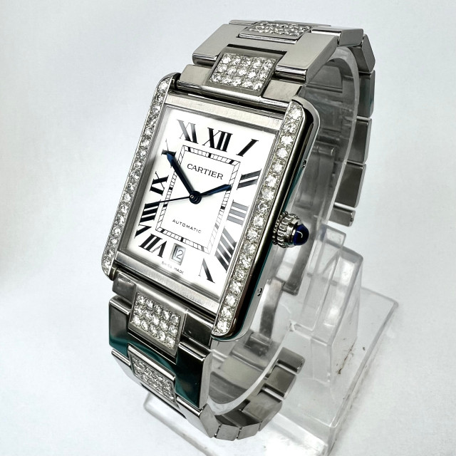 This Women's Cartier Tank Solo is a luxurious and stylish watch. The watch is made of Stainless Steel, offering a premium feel. The case measures 31 mm. The bracelet is made of Stainless Steel and is set with White. The dial is Silver, enhancing its visual appeal. Powered by an Automatic movement, the watch includes functions such as Date Indicator. Offered in Good condition, and comes with a seller's warranty of 60 months. Also available on custom order with additional options.