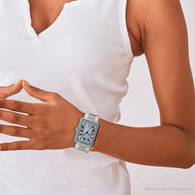 This Women's Cartier Tank Solo is a luxurious and stylish watch. The watch is made of Stainless Steel, offering a premium feel. The case measures 31 mm. The bracelet is made of Stainless Steel and is set with White. The dial is Silver, enhancing its visual appeal. Powered by an Automatic movement, the watch includes functions such as Date Indicator. Offered in Good condition, and comes with a seller's warranty of 60 months. Also available on custom order with additional options. Please note this Cartier watch is pre-owned, in excellent condition, the diamonds are high quality, natural diamonds, set by our master craftsmen, watch box might show signs of wear (watch itself will be in perfect condition), comes with a 5 year warranty from ItsHot.