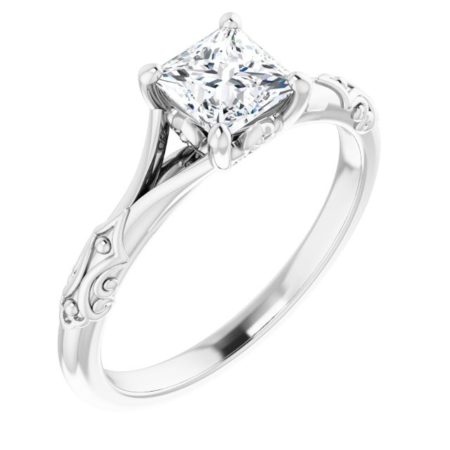 Zuri Women's 14K Gold Princess Cut Natural Diamond Solitaire Thin Split Shank Engagement Ring | Prong Set